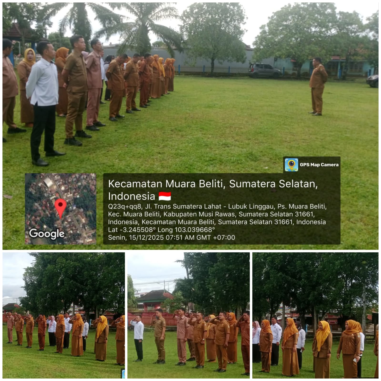 Ulasanrakyat.Com — Musi Rawas. Upaya memperkuat disiplin dan etos kerja aparatur kembali ditegaskan dalam apel pagi gabungan yang digelar di lingkungan Kantor Camat Muara Beliti, Senin (15/12/2025). Apel yang berlangsung khidmat ini diikuti oleh pegawai Kantor Camat, para lurah, Koordinator Lapangan KB, pendamping Kementerian Sosial, serta staf non-ASN.