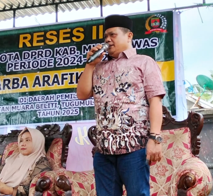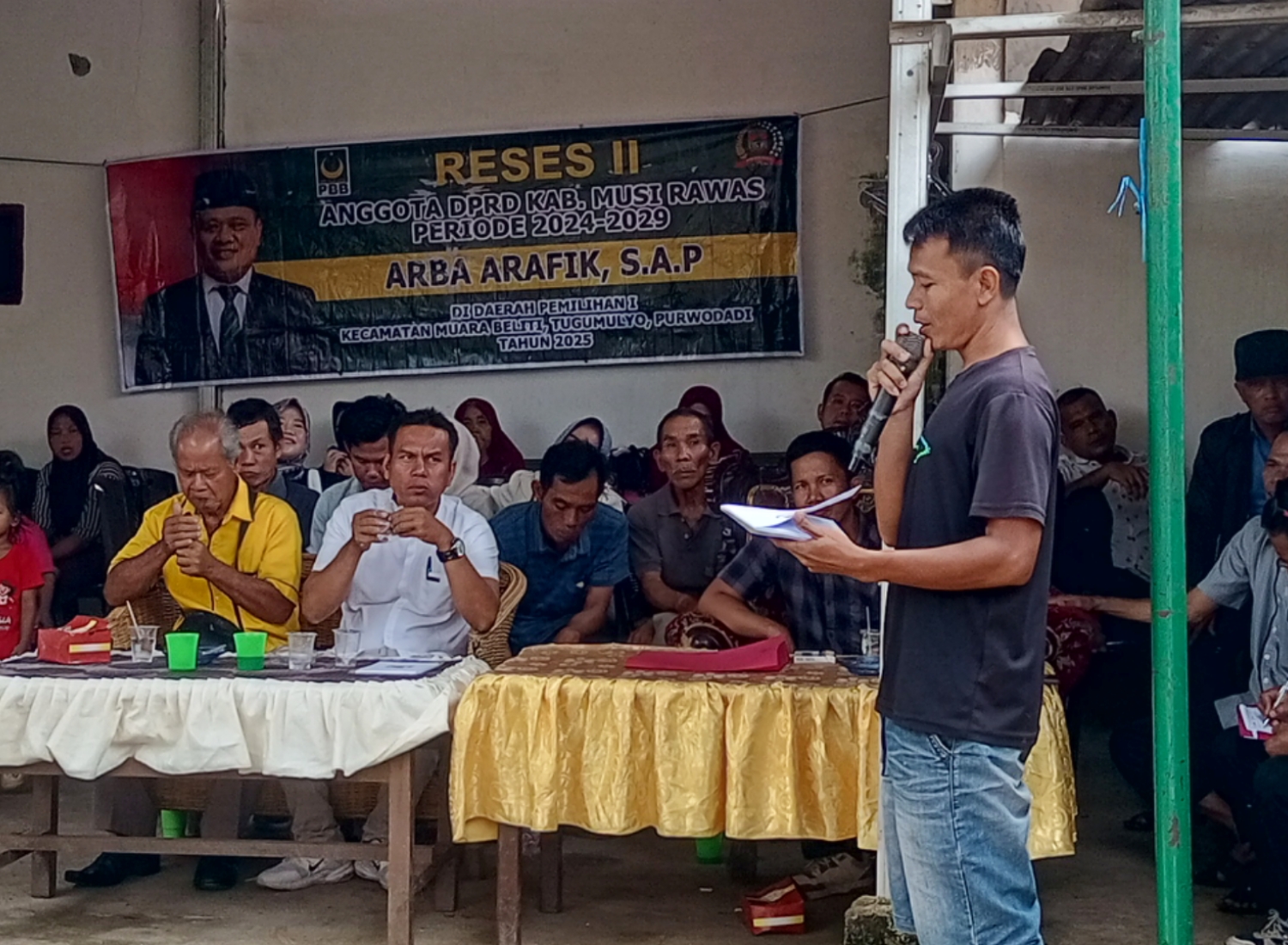 Ulasanrakyat.Com – Musi Rawas. Anggota DPRD Kabupaten Musi Rawas Periode 2024–2029 dari Partai Bulan Bintang (PBB), Arba Arapik, S.A.P, melaksanakan Reses II di Kampung V Desa Suro, Kecamatan Muara Beliti, Minggu (24/08/2025). Acara reses yang digelar di kediamannya tersebut dihadiri perangkat desa dan masyarakat yang menyampaikan sejumlah usulan prioritas pembangunan.