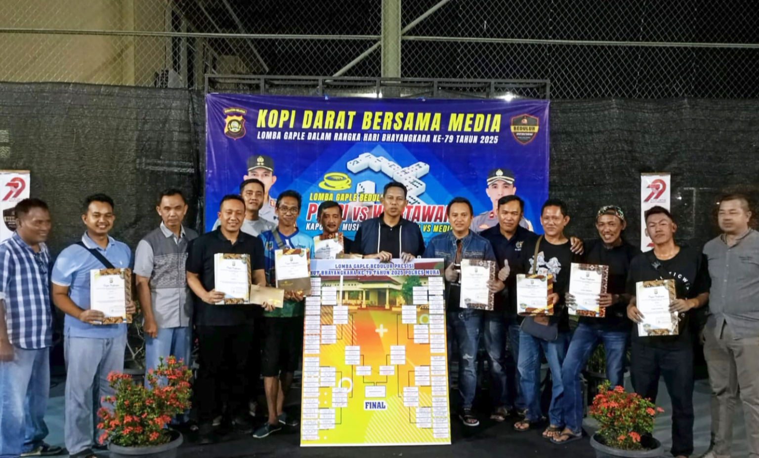 Ulasanrakyat.Com – Musi Rawas. Polres Musi Rawas (Mura), menggelar Lomba Gaple Bedulur Polri Vs Wartawan Kapolres Musi Rawas Cup, dalam rangka Hari Bhayangkara ke-79, di Lapangan Tenis Mapolres Mura, Jumat malam (13/6/2025).