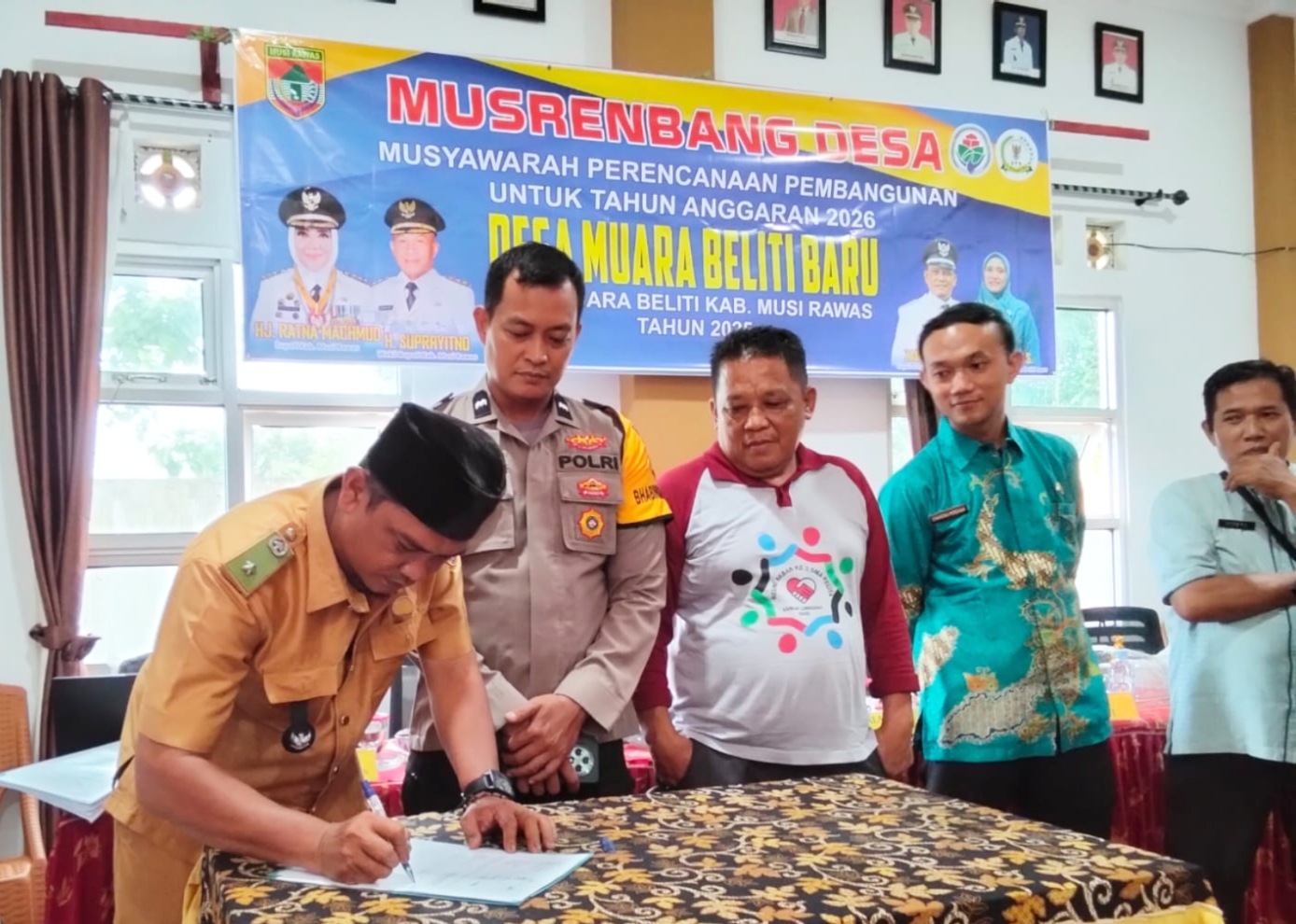 Sementara itu, Kepala Desa Muara Beliti Baru, Zaipul Basri, dalam laporannya menyampaikan bahwa Musrenbang tahun ini menjadi momen penting untuk menyusun prioritas pembangunan 2026, dengan fokus pada peningkatan sarana pendidikan, kesehatan masyarakat, pengembangan ekonomi desa, serta infrastruktur jalan dan irigasi.