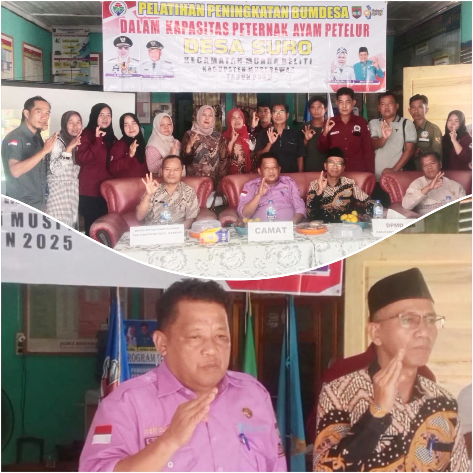 Ulasanrakyat.Com – Musi Rawas. Pemerintah Kecamatan Muara Beliti terus berupaya meningkatkan kapasitas Badan Usaha Milik Desa (BUMDes) sebagai motor penggerak ekonomi desa. Hal ini ditunjukkan dengan kehadiran Camat Muara Beliti, Supriadi, M.Pd, yang secara resmi membuka Pelatihan Peningkatan BUMDes dalam bidang peternakan ayam petelur di Desa Suro, Kamis (28/08/2025).
