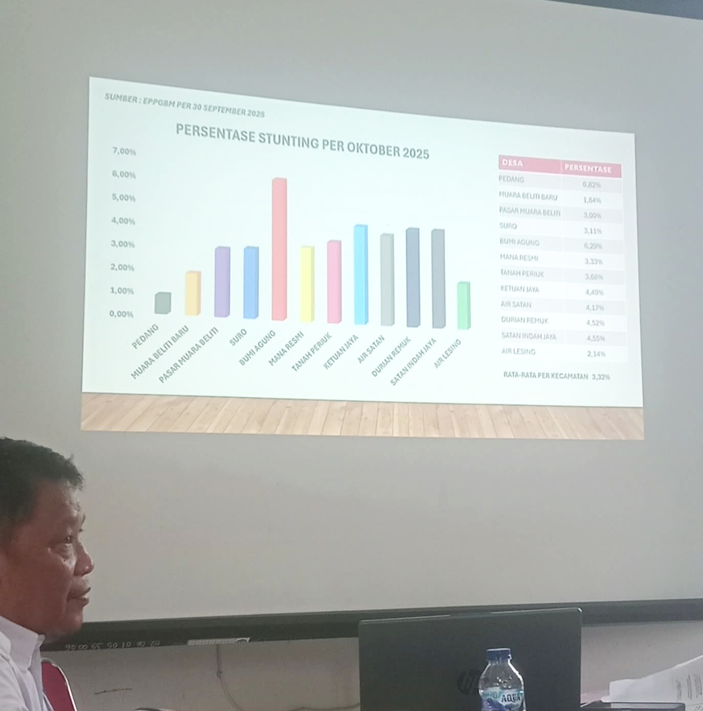 Camat Supriadi menambahkan, keberhasilan menurunkan angka stunting harus dimulai dari kesadaran keluarga dan desa dalam menjaga pola makan, sanitasi, dan pola asuh anak. Ia berharap hasil dari mini lokakarya ini dapat menjadi dorongan nyata bagi desa-desa di Muara Beliti untuk terus berinovasi dan memperkuat gerakan “Mura Bebas Stunting”.