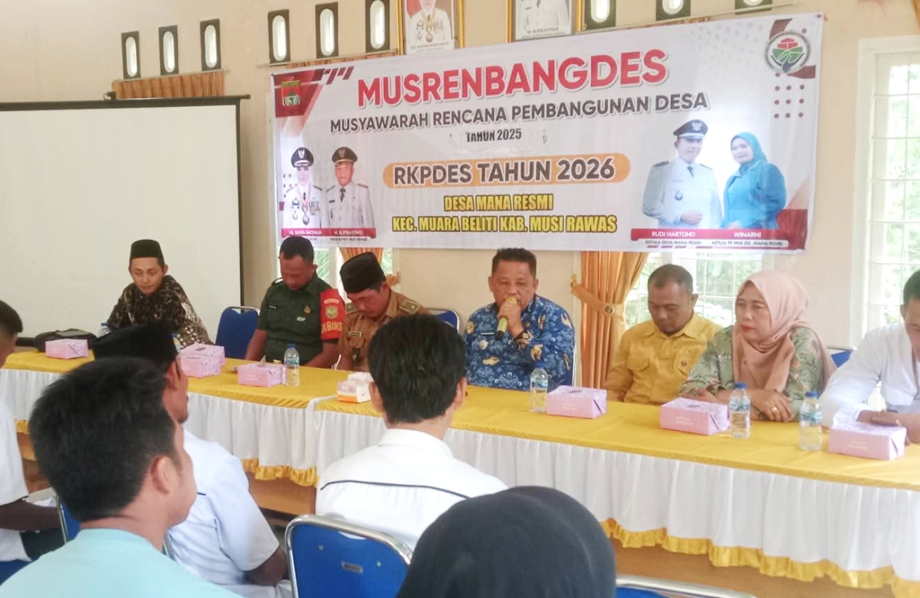 Ulasanrakyat.Com – Musi Rawas. Momentum Musyawarah Perencanaan Pembangunan Desa (Musrenbangdes) menjadi wadah strategis bagi masyarakat dalam menentukan arah pembangunan desa. Hal ini terlihat jelas dalam pelaksanaan Musrenbangdes Desa Manah Resmi, Kecamatan Muara Beliti, Kabupaten Musi Rawas, yang digelar di kantor desa setempat pada Selasa (28/10/2025).