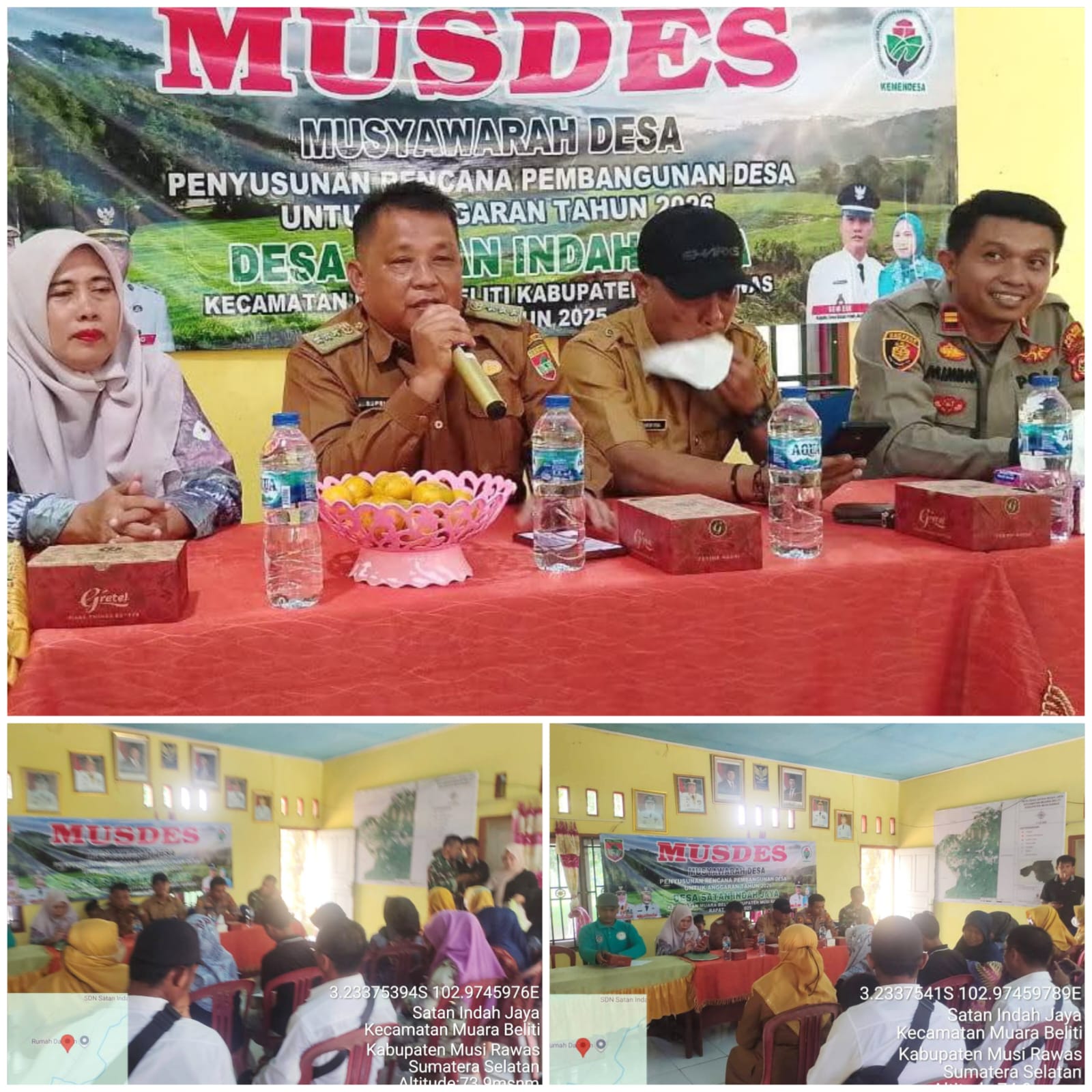 Dalam kesempatan tersebut, hadir pula Kepala Desa Satan Indah Jaya beserta perangkat desa, Kapolsek Muara Beliti, Bhabinkamtibmas, Danposramil, Korcam PD, Pendamping Lokal Desa (PLD), Ketua dan anggota BPD, serta tokoh masyarakat, agama, pemuda, dan warga setempat.