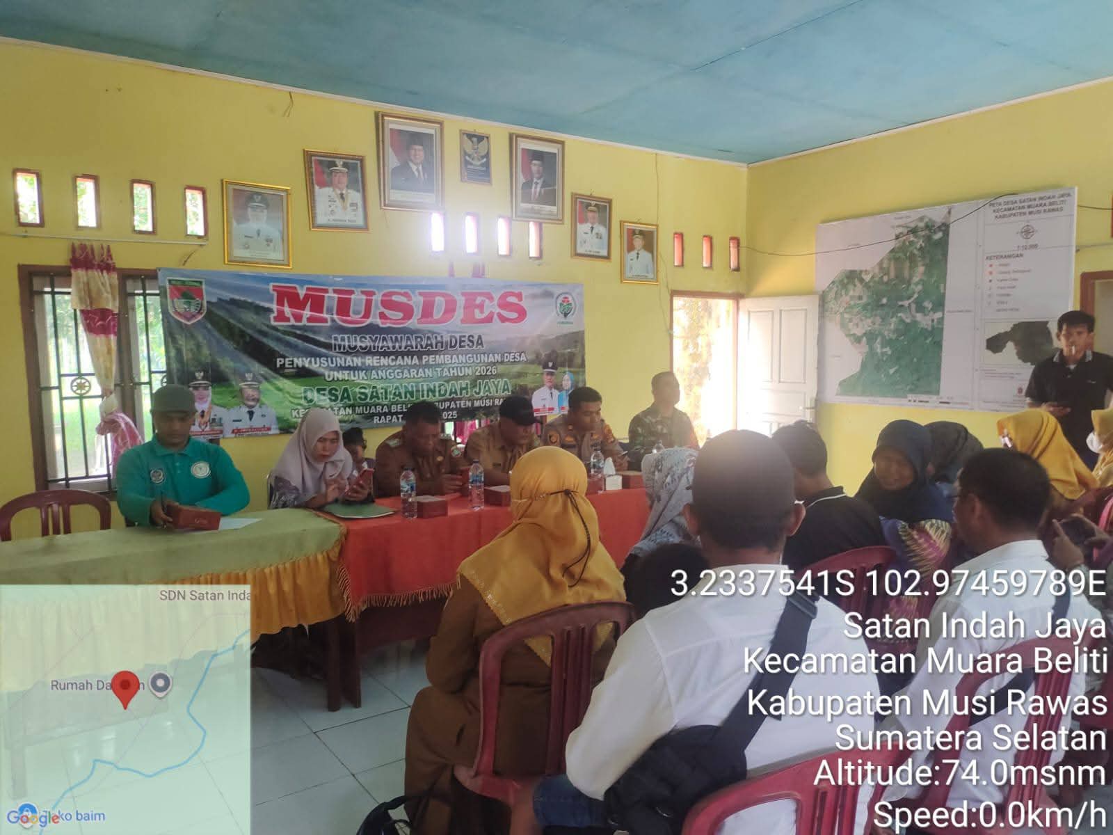 Dalam kesempatan tersebut, hadir pula Kepala Desa Satan Indah Jaya beserta perangkat desa, Kapolsek Muara Beliti, Bhabinkamtibmas, Danposramil, Korcam PD, Pendamping Lokal Desa (PLD), Ketua dan anggota BPD, serta tokoh masyarakat, agama, pemuda, dan warga setempat.