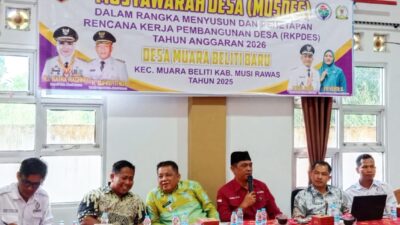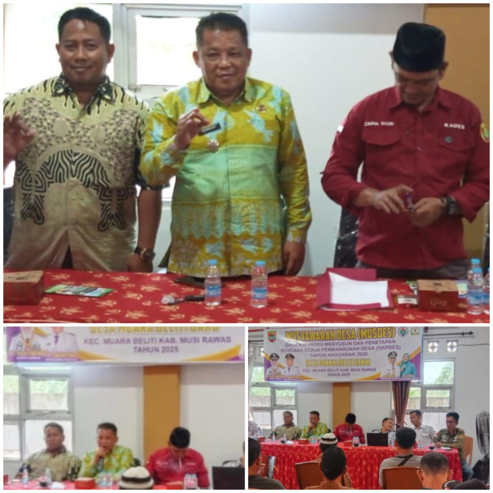 Ulasanrakyat.Com — Musi Rawas. Dalam upaya memperkuat arah pembangunan desa yang partisipatif dan berkeadilan, Camat Kecamatan Muara Beliti, Supriadi, M.Pd., menghadiri sekaligus membuka secara resmi Musyawarah Desa (Musdes) di Desa Muara Beliti Baru, Kamis (23/10/2025).