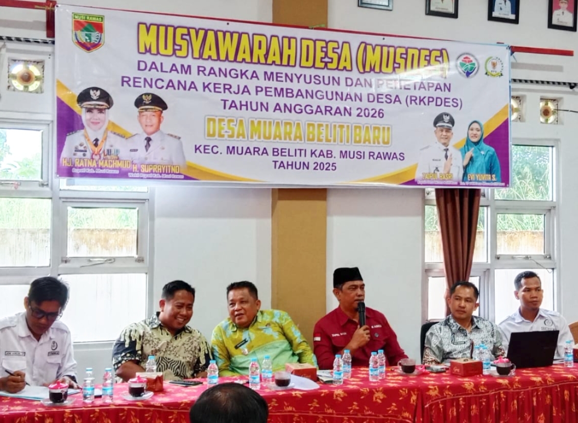 Musdes tersebut digelar di kantor Desa Muara Beliti Baru, Kecamatan Muara Beliti, Kabupaten Musi Rawas, dan dihadiri oleh berbagai unsur pemerintahan dan masyarakat. Turut hadir Kepala Desa Muara Beliti Baru, Zaipul Basri perwakilan Dinas Lingkungan Hidup (DLH), Pendamping Desa (PD), Pendamping Lokal Desa (PLD), Ketua dan Anggota BPD, pengurus Koperasi Merah Putih, pengurus BUMDes, tokoh masyarakat, tokoh agama, serta perwakilan warga dari Dusun I hingga Dusun IV.