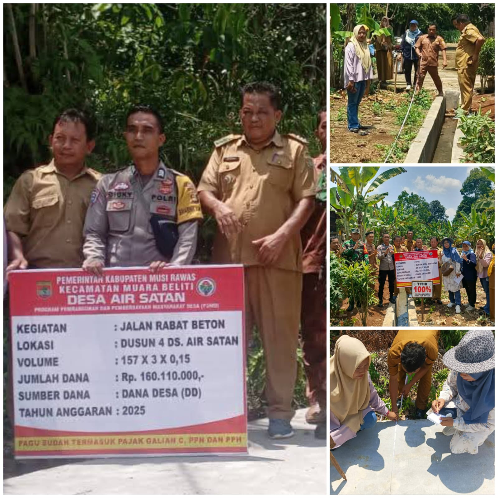 Dengan rampungnya pembangunan fisik ini, Desa Air Satan kini memiliki infrastruktur yang lebih baik untuk menunjang mobilitas, ekonomi, dan kenyamanan warga, terutama bagi para petani yang menjadi tulang punggung perekonomian desa.