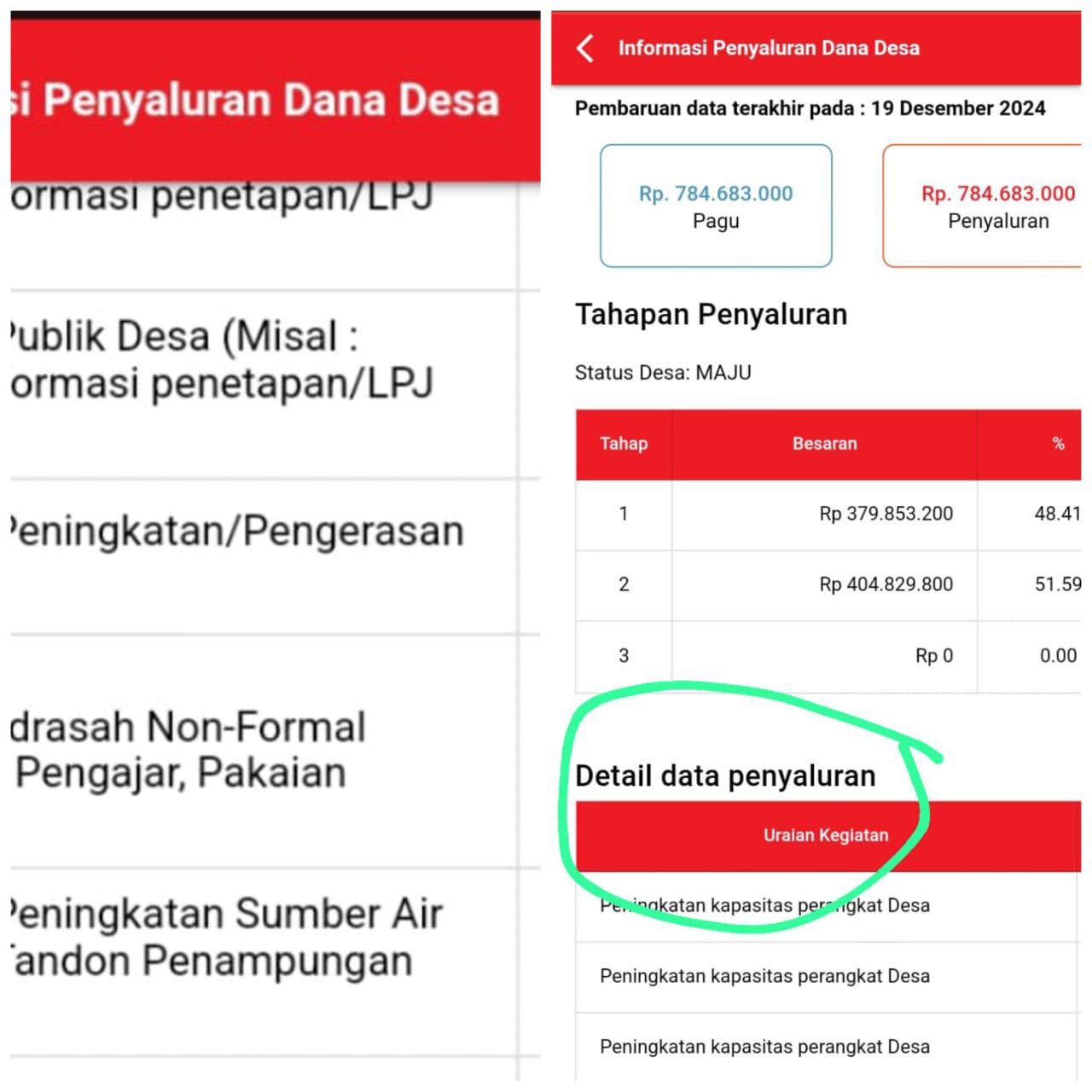 Namun, laporan resmi dari desa ke Kementerian Desa tetap mencantumkan kegiatan pembangunan sumur bor tahun 2024 dengan anggaran Rp140 juta, menimbulkan dugaan ketidaksesuaian data.