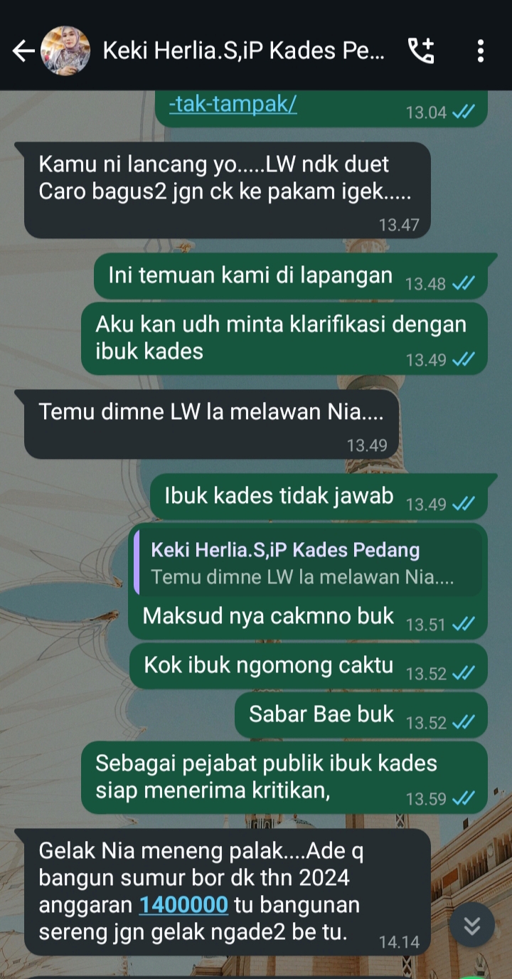 Tidak berhenti di situ, sang kades bahkan menantang wartawan untuk bertemu secara langsung.