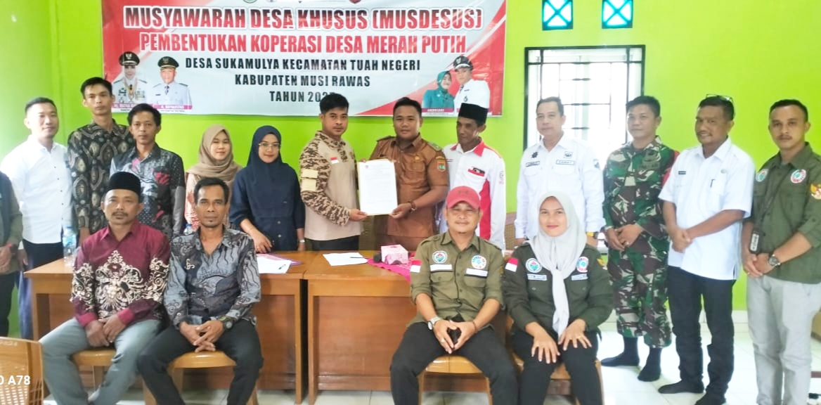 Ulasanrakyat.Com – Musi Rawas. Pemerintah Desa Sukamulya, Kecamatan Tuah Negeri, Kabupaten Musi Rawas menggelar Musyawarah Desa Khusus (Musdessus) dalam rangka pembentukan Koperasi Desa (Kopdes) Merah Putih tahun 2025, Selasa (07/05/2025). Acara berlangsung di Kantor Desa Sukamulya sejak pukul 09.00 WIB dan berjalan sukses.