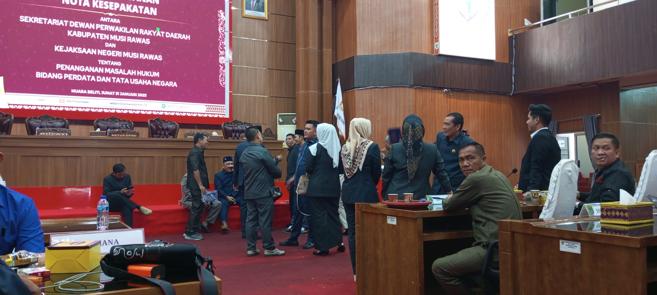 Ulasanrakyat.Com– Musi Rawas. Dewan Perwakilan Rakyat Daerah (DPRD) dan Pihak Kejaksaan kabupaten Musi Rawas melaksanakan kegiatan penandatanganan Memorandum of Understanding (MoU), kesepakatan dilakukan kedua instansi ini berkaitan tentang penanganan perdata dan hukum tata usaha negara. Kegiatan dilaksanakan digedung DPRD Kabupaten Musi Rawas (Mura) Provinsi Sumatera Selatan (Sumsel) Jum’at (31/01/2025).