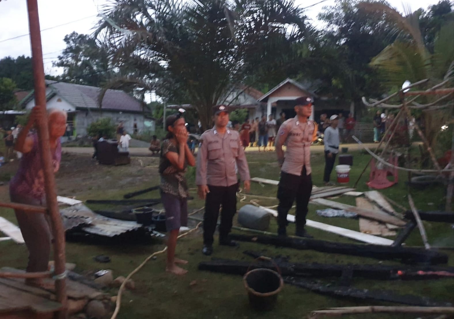 Mendapat laporan tersebut, personel Polsek Jayaloka, dipimpin Kapolsek Jayaloka, Iptu M. Soleh, S.H langsung menuju lokasi kejadian dan tiba pada pukul 17.30 WIB untuk membantu pemadaman serta mengamankan Tempat Kejadian Perkara (TKP).
