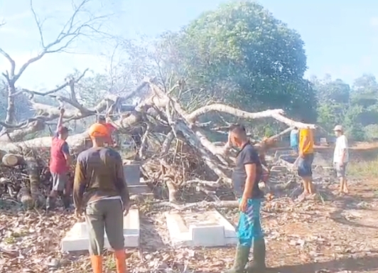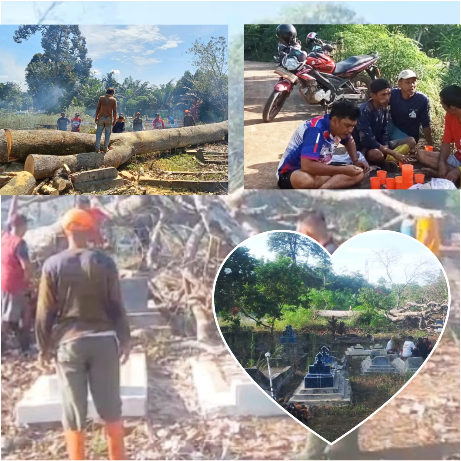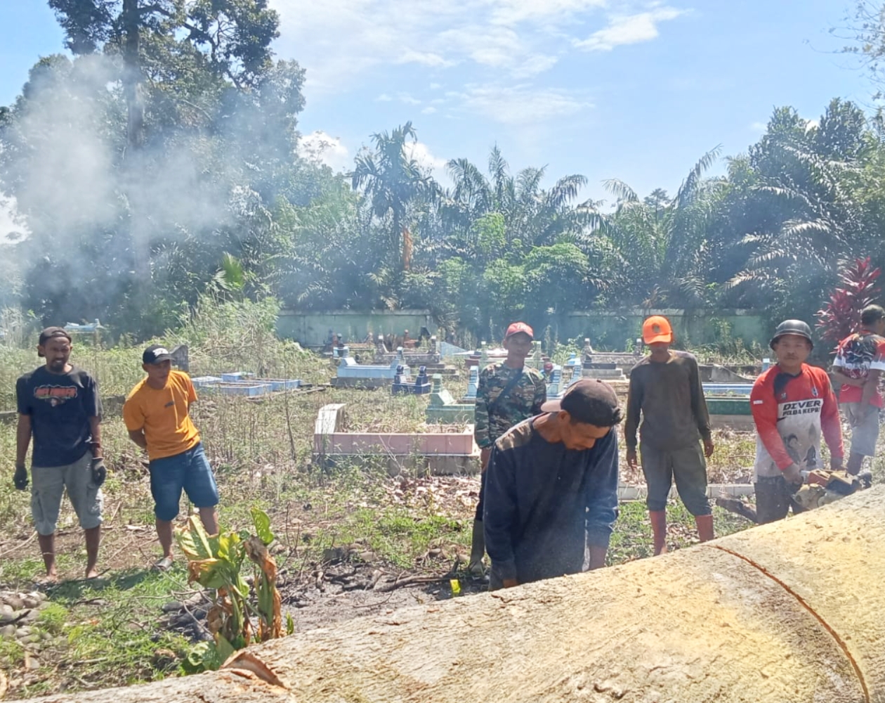 Gotong royong ini berlangsung penuh kekompakan. Warga terlihat saling membantu membersihkan bagian demi bagian TPU, termasuk memotong kayu roboh, memangkas rumput yang meninggi, hingga merapikan jalan setapak menuju area makam. Suasana kebersamaan inilah yang membuat kegiatan berjalan lancar dan penuh makna.