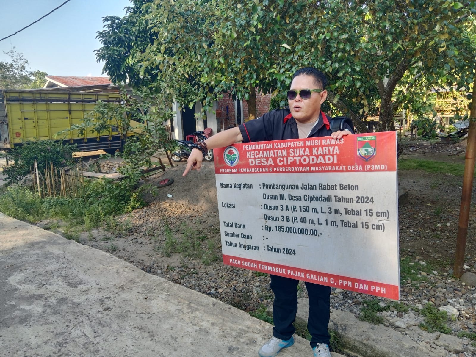 Di Desa Ciptodadi, pembangunan jalan rapat beton yang menjadi satu-satunya kegiatan fisik dalam APBDes 2024, kini menuai kritik. Pembangunan di dua lokasi dalam satu dusun, yaitu Dusun III, telah menghabiskan anggaran sebesar Rp185 juta. Lokasi A memiliki panjang 150 meter, lebar 3 meter dan tebal 15 cm, sementara lokasi B sepanjang 40 meter, lebar 1 meter dengan ketebalan serupa.
