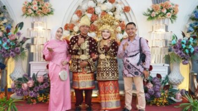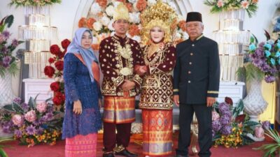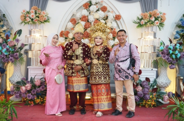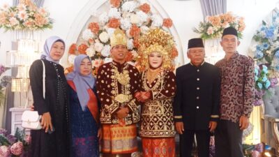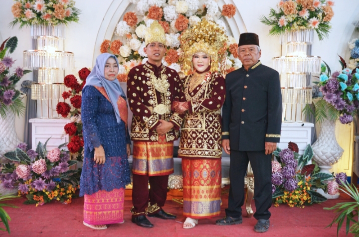 Kedua keluarga besar terlihat begitu bangga dan bahagia menyaksikan putra-putri mereka duduk bersanding di pelaminan, menjadi pusat perhatian dalam balutan adat dan nuansa kekeluargaan yang kental.