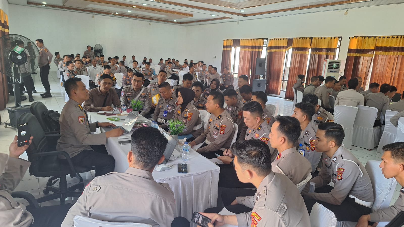 Pejabat yang hadir dalam kegiatan antara lain Kapolres Mura, Kabag Ops, serta pejabat dan operator yang terlibat langsung dalam Operasi Ketupat-2025.