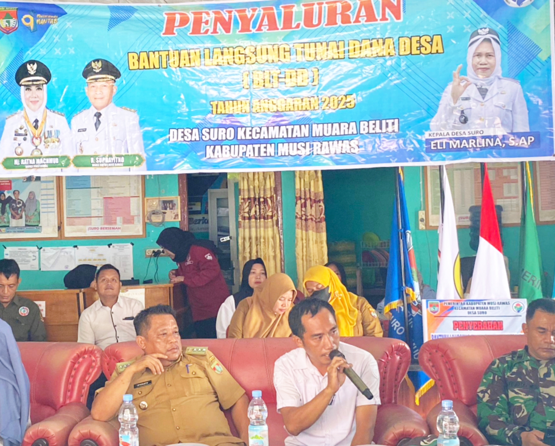 Ulasanrakyat.Com – Musi Rawas. Pemerintah Desa Suro, Kecamatan Muara Beliti, Kabupaten Musi Rawas kembali menyalurkan Bantuan Langsung Tunai Dana Desa (BLT-DD) Tahun Anggaran 2025 kepada 41 Keluarga Penerima Manfaat (KPM). Penyaluran dilakukan di Kantor Desa Suro pada Selasa (04/11/2025), dengan suasana penuh haru dan rasa syukur dari masyarakat penerima bantuan.