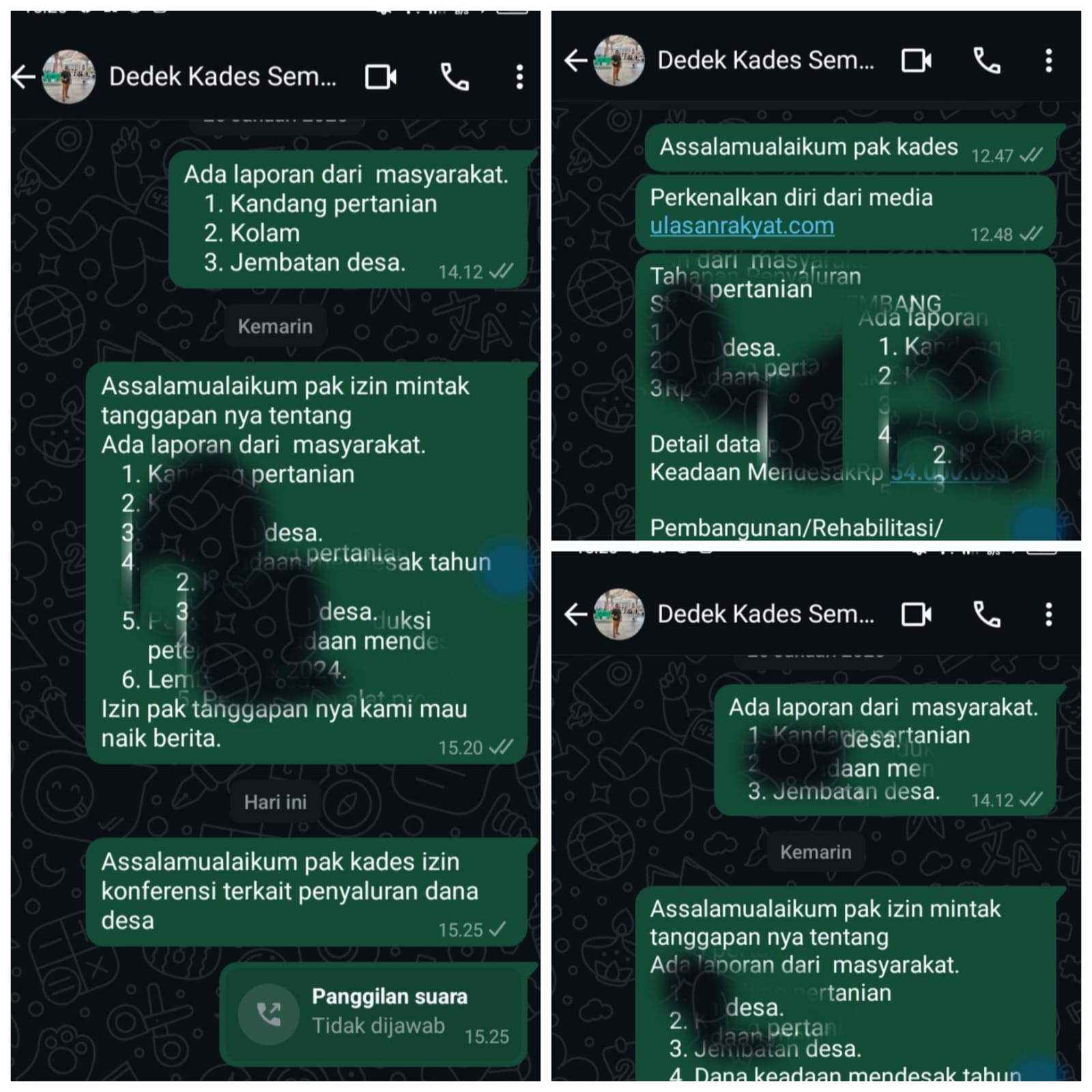 Awak media berulang kali mencoba menghubungi Kepala Desa melalui sambungan seluler dan aplikasi WhatsApp, namun tidak mendapatkan respons atau keterangan apapun terkait pertanyaan seputar informasi publik yang wajib diketahui masyarakat. Jumat (07/02/2025)