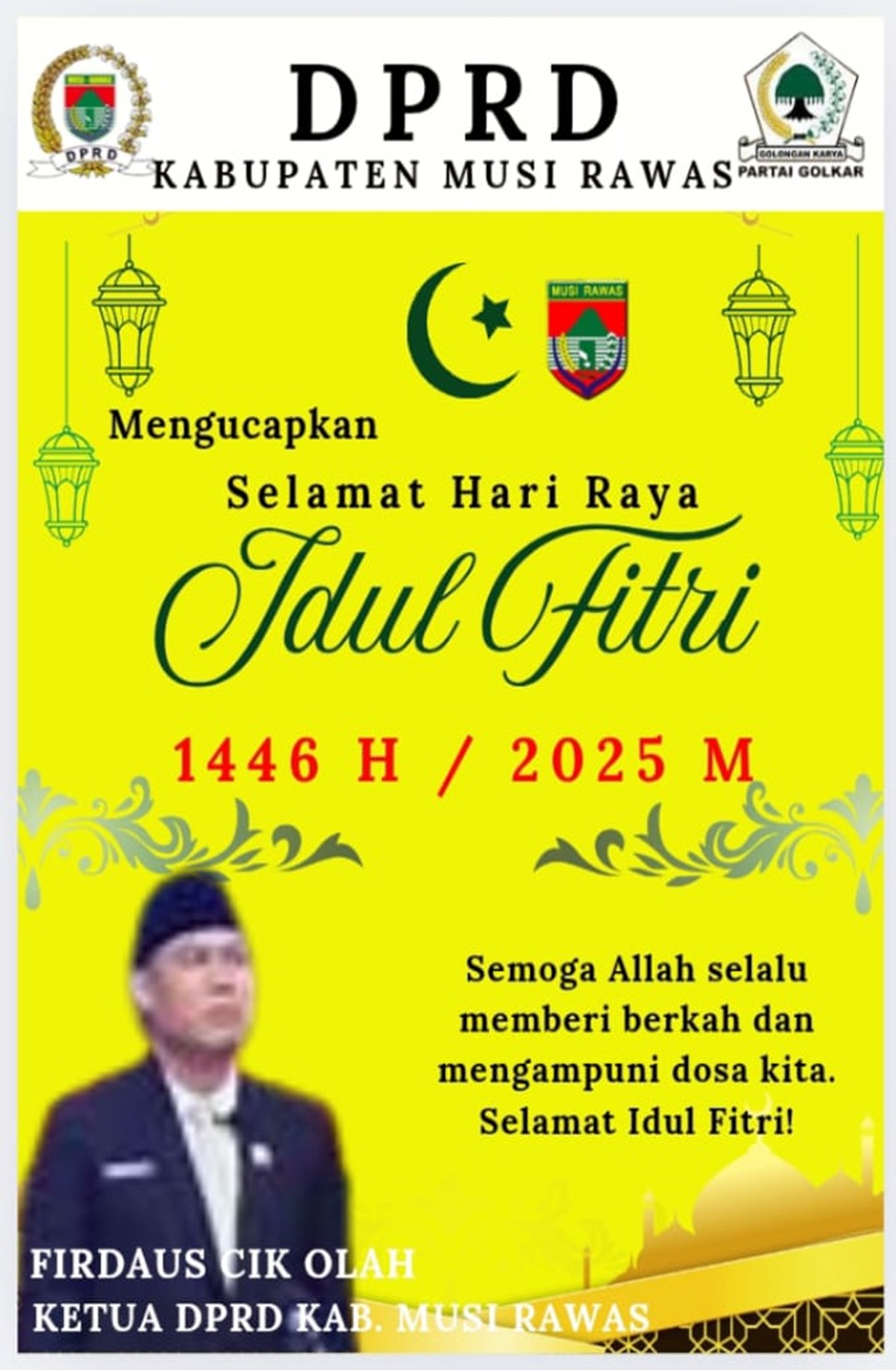 Ketua DPRD Kabupaten Musi Rawas Mengucapakan Selamat Hari Raya Idhul Fitri 1446 H / 2025 M