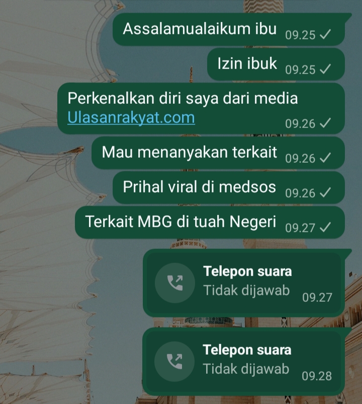 Hingga berita ini diterbitkan, koordinator dapur MBG Kecamatan Tuah Negeri belum memberikan tanggapan resmi. Upaya konfirmasi melalui telepon dan pesan WhatsApp oleh awak media tidak mendapat respon.