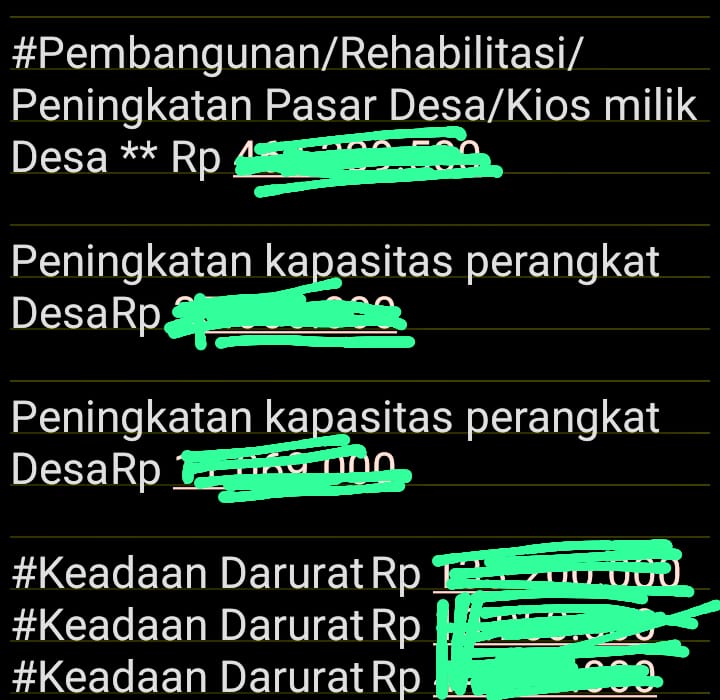 “Dari tahun ke tahun, banyak kegiatan yang dilaporkan itu-itu saja. Misalnya, pembangunan jaringan informasi lokal, peningkatan kapasitas perangkat desa, atau keadaan mendesak, itu muncul hampir tiap tahun dengan jumlah berbeda. Ini patut dicurigai,” ungkap Sastra Widodo dari LBH.