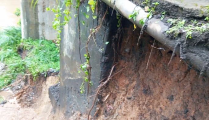 “Sekitar jam 05.30 terdengar suara dentuman keras, saya belum tahu apa penyebabnya. Setelah keluar rumah sekitar jam 06.00 baru jelas, ternyata yang bunyi itu tanah longsor di bibir jembatan,” ujarnya.