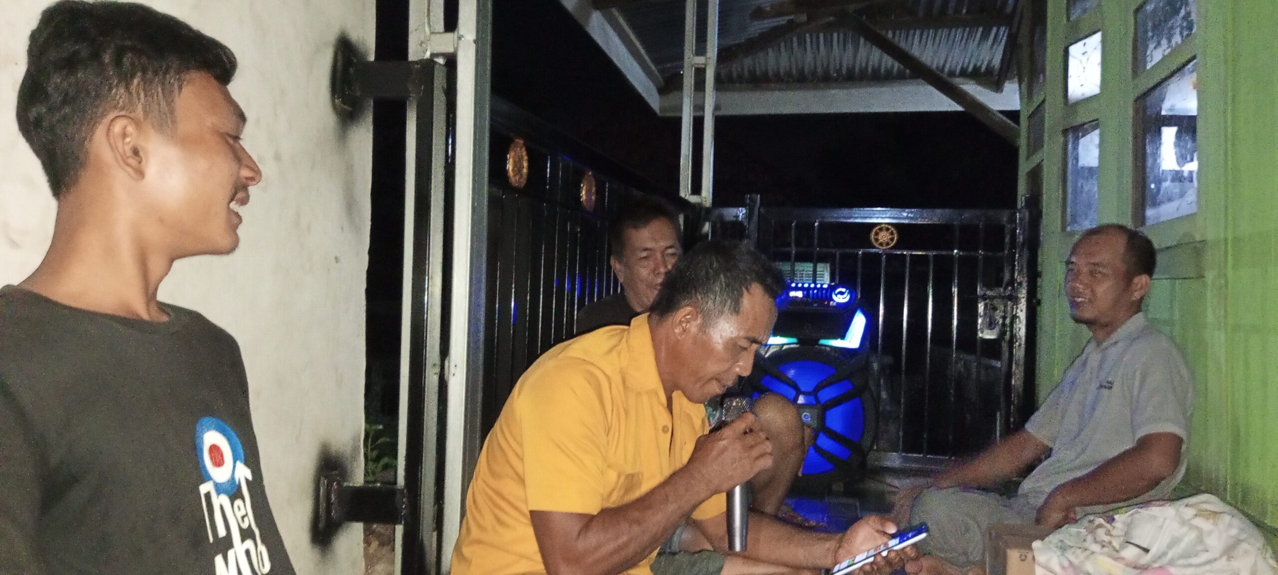 Deru suara musik dari pengeras suara sederhana berpadu dengan tawa dan tepuk tangan. Suara warga yang bergantian bernyanyi terdengar bersahutan, menghidupkan malam desa yang biasanya sunyi. Tidak ada panggung megah, tidak ada cahaya lampu sorot hanya lantunan lagu, canda tawa, dan kebersamaan yang hangat.