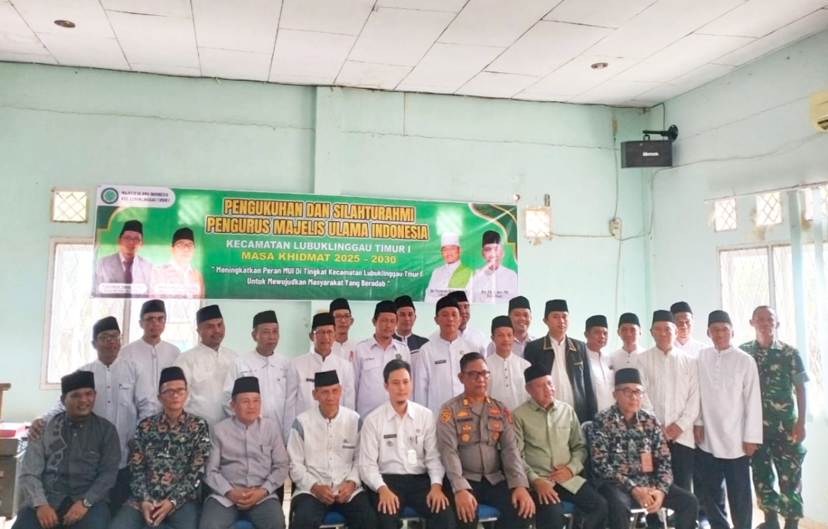 Ulasanrakyat.Com – Lubuklinggau. Majelis Ulama Indonesia (MUI) Kecamatan Lubuklinggau Timur I resmi dikukuhkan pada Rabu (3/9/2025) di aula Kantor Kecamatan Lubuklinggau Timur I. Momentum sakral ini dihadiri berbagai tokoh penting, mulai dari Kapolsek Lubuklinggau Timur I AKP Rodiman, Camat H. Heru Prayudha, Ketua Umum MUI Kota Lubuklinggau KH. M. Asri, perwakilan Danramil 406-10, para lurah se-Kecamatan, hingga tokoh agama, tokoh adat, dan masyarakat setempat.