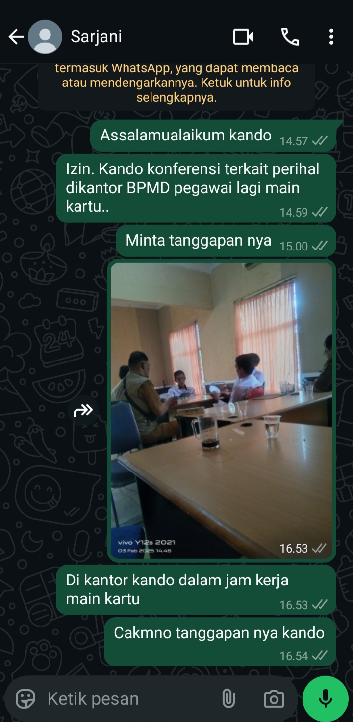 Ulasanrakyat.Com– Musi Rawas Oknum Aparatur Sipil Negara (ASN) Dinas Pemberdayaan Masyarakat Dan Desa (DPMD), Kabupaten Musi Rawas, di waktu jam kerja Pegawai DPMD melakukan main kartu remi diruangan kantor DPMD Kabupaten Musi Rawas (Mura), Provinsi Sumatera Selatan (Sumsel), Senin (03/02/2025)