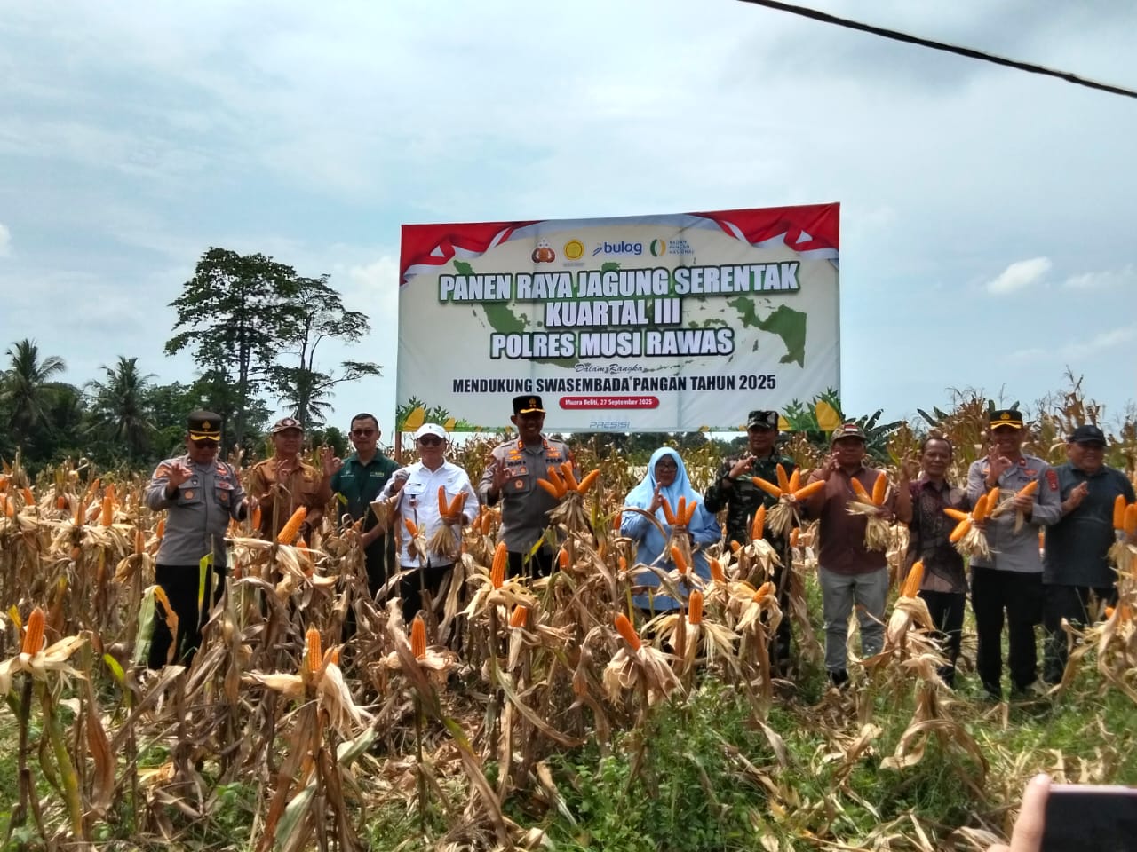 Ulasanrakyat.Com – Musi Rawas. Polres Musi Rawas bersama jajaran Forkopimda dan kelompok tani menggelar panen raya jagung serentak kuartal III di Kampung VII, Tri Bina Bali, Desa Suro, Kecamatan Muara Beliti, Kabupaten Musi Rawas, Sabtu (27/09/2025).