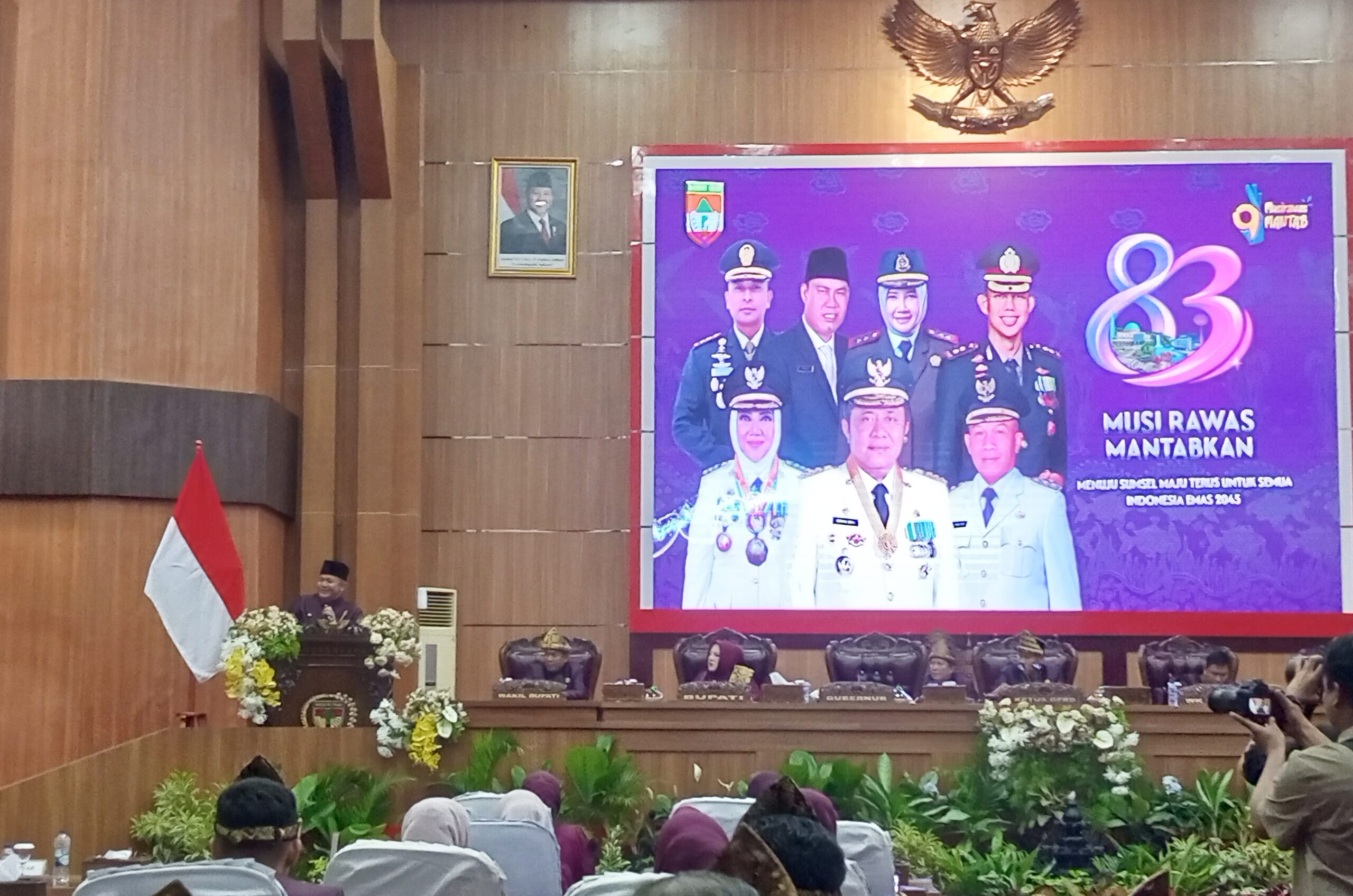 Rapat Paripurna DPRD Kabupaten Musi Rawas dalam rangka memperingati Hari Jadi ke-83 Kabupaten Musi Rawas berlangsung khidmat di Ruang Rapat Paripurna DPRD Musi Rawas, Senin (20/04/2026). Agenda penting ini dipimpin langsung Ketua DPRD Musi Rawas, Firdaus Cik Olah, serta dihadiri jajaran pejabat penting dari pusat hingga daerah.