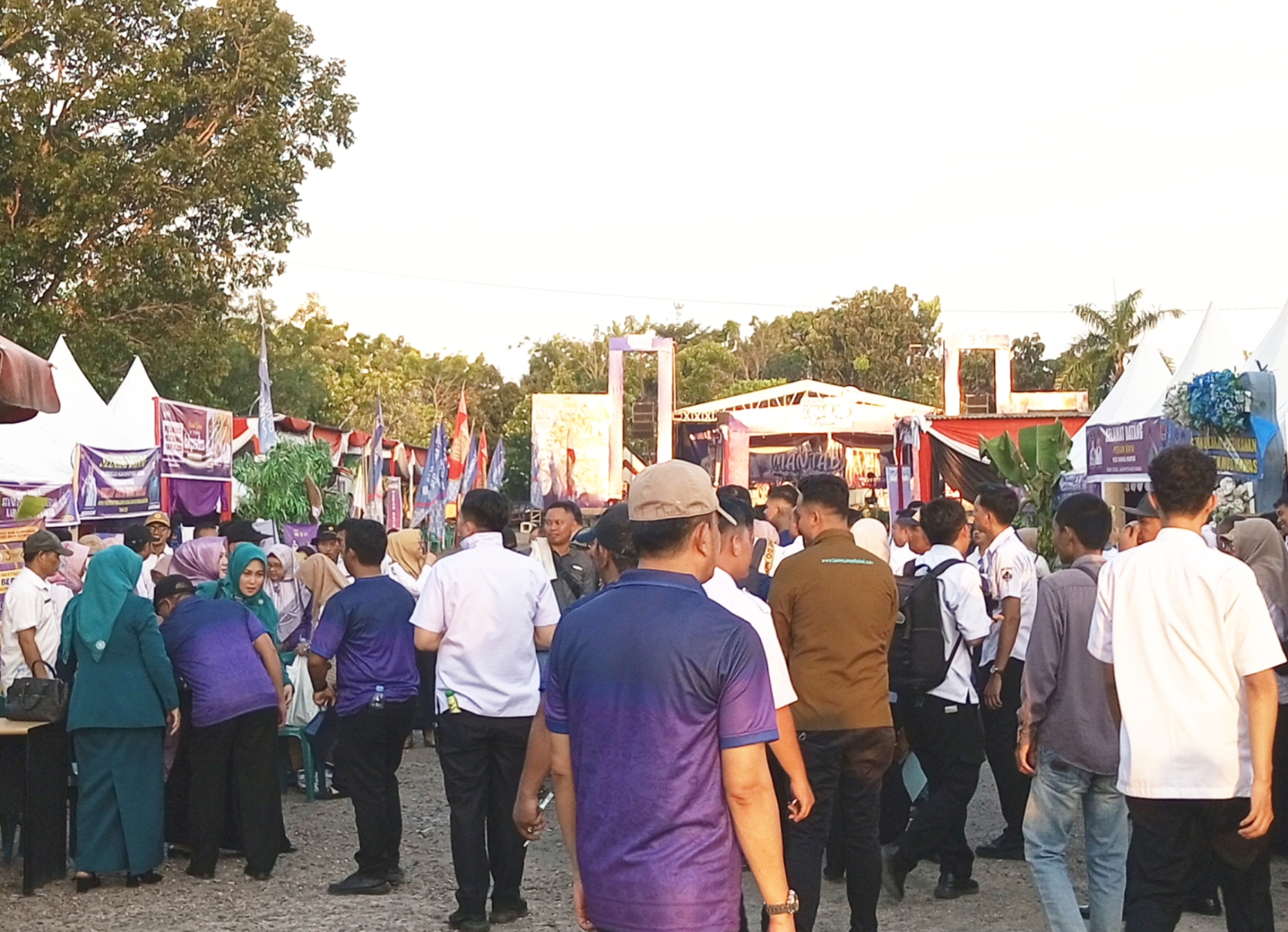 Suasana semakin meriah ketika deretan stan pameran mulai ramai dikunjungi. Setiap stan menampilkan produk unggulan UMKM, seperti kerajinan tangan, kuliner khas, hasil pertanian, hingga produk teknologi lokal yang menjadi bukti nyata kemajuan ekonomi kreatif masyarakat.