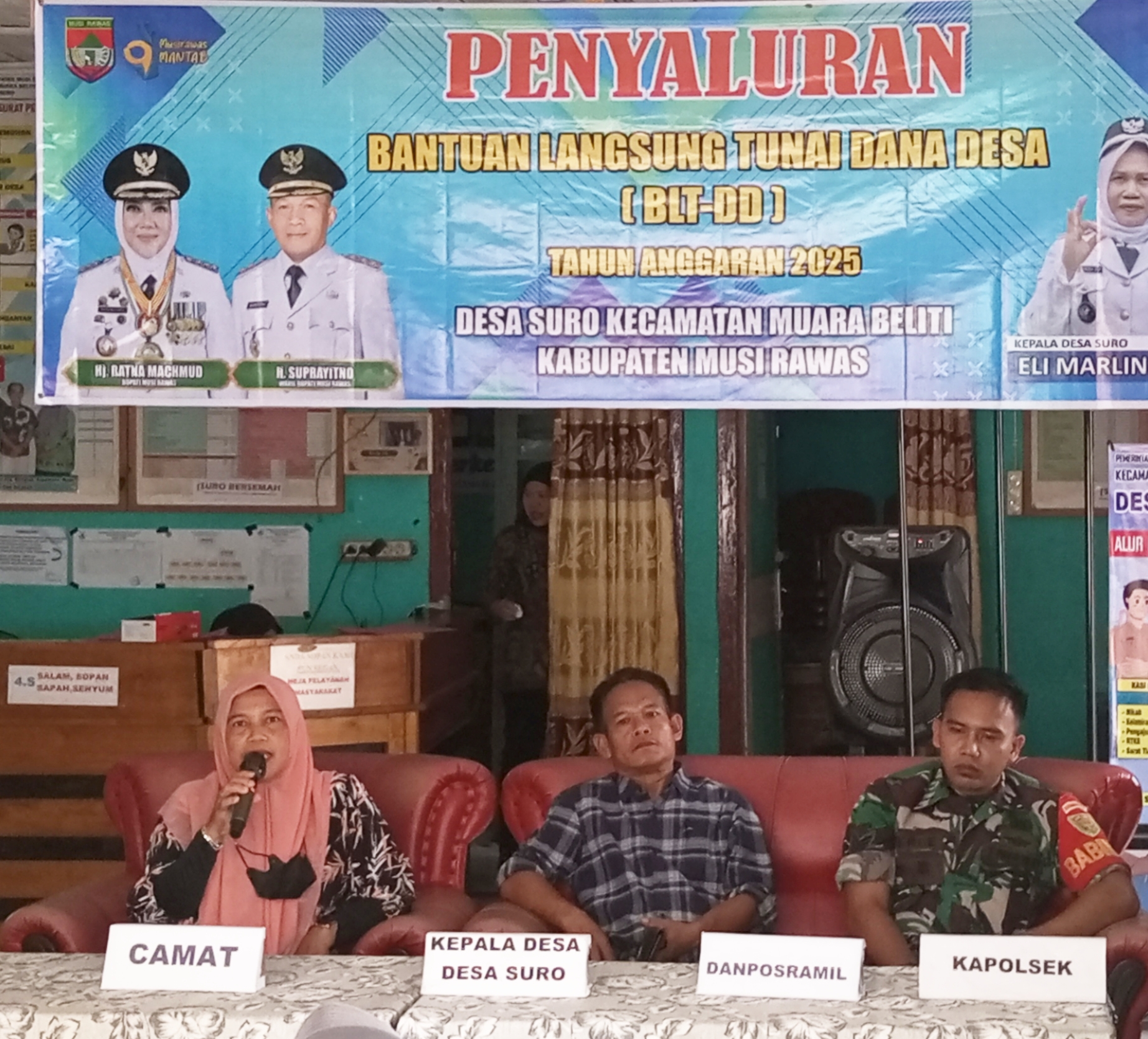 Ulasanrakyat.Com– Musi Rawas. Pemerintah Desa Suro melaksanakan program kegiatan Penyaluran Bantuan Langsung Tunai (BLT) dari Dana Desa (DD) tahap 1 tahun 2025, Tersalurkan 41 Keluarga Penerima Manfaat (KPM) Bantuan Langsung Tunai Dana Desa (BLT-DD)