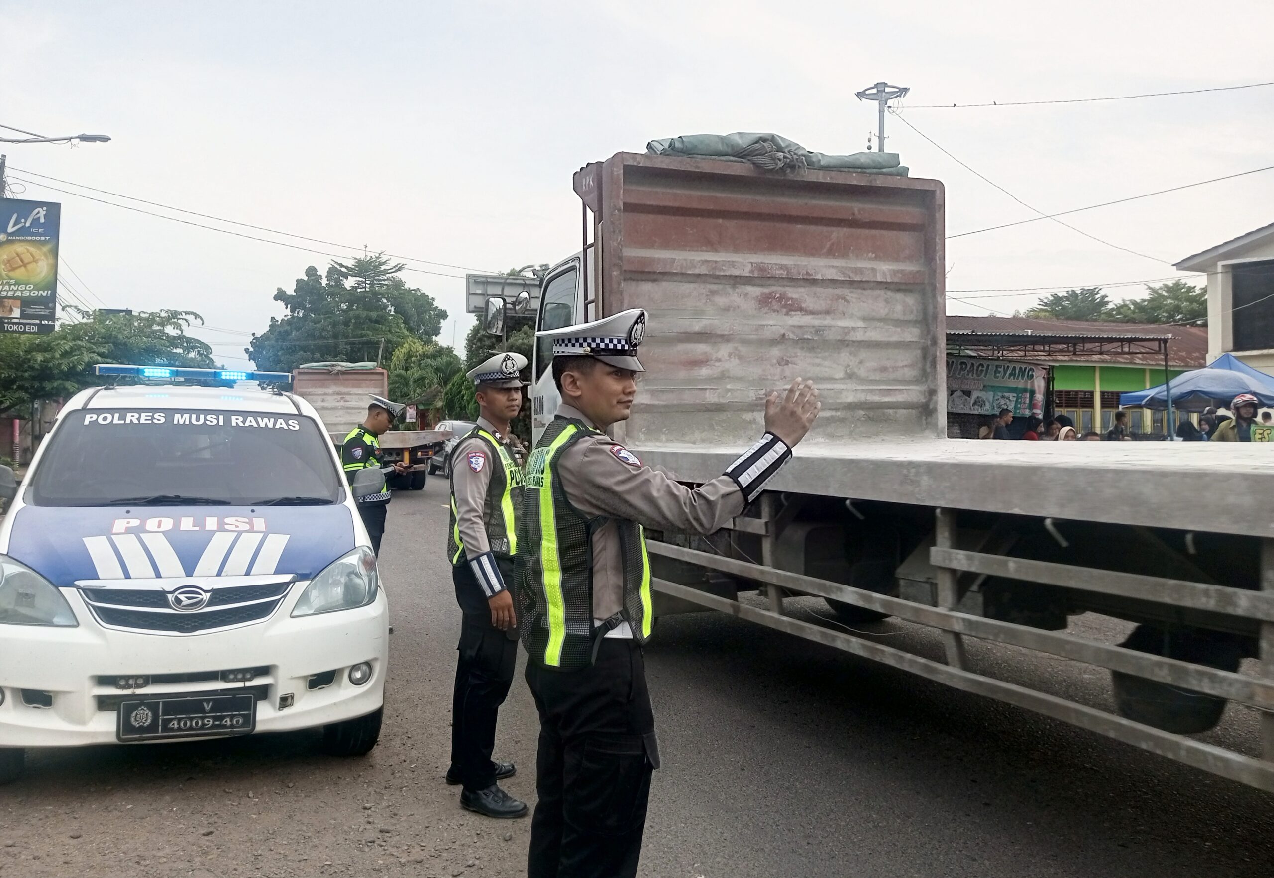 Di lapangan, personel terlihat aktif melakukan pengaturan arus lalu lintas, pemantauan kendaraan, serta memberikan edukasi kepada para pengendara, khususnya kendaraan angkutan barang, agar tetap mematuhi aturan berlalu lintas.