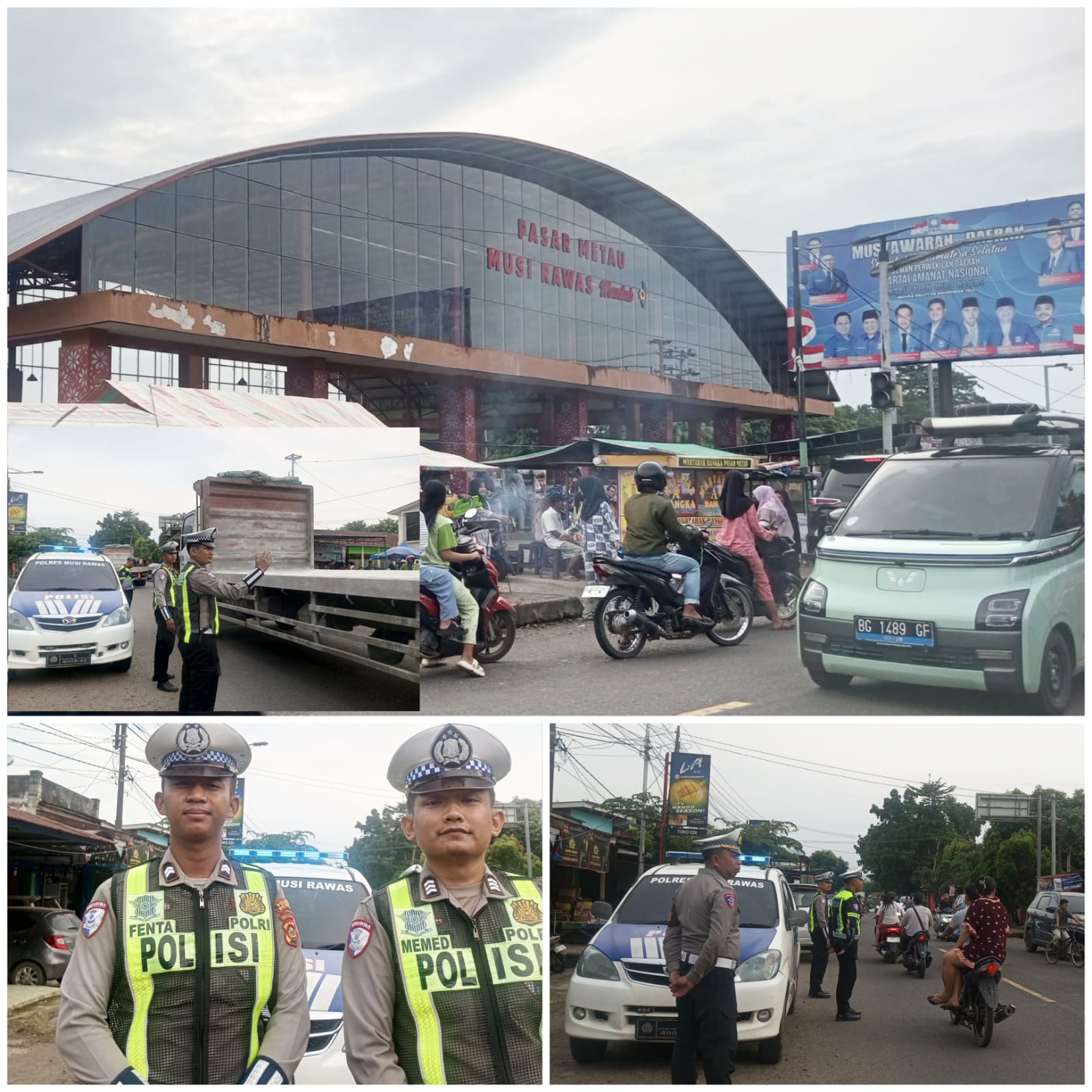 Kegiatan patroli sore hari difokuskan di depan Pasar Metau, Kelurahan Pasar Muara Beliti, Kecamatan Muara Beliti, Kabupaten Musi Rawas. Kehadiran petugas di kawasan pasar yang dikenal padat aktivitas ini menjadi langkah preventif untuk mengurai kepadatan arus kendaraan sekaligus menekan potensi pelanggaran lalu lintas.
