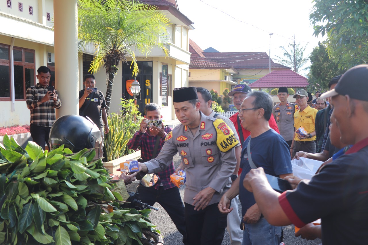 Kapolres Musi Rawas, AKBP Andi Supriadi, bersama Wakapolres dan para Pejabat Utama (PJU) Polres Musi Rawas, serta insan pers turun langsung membagikan ratusan paket takjil kepada pengguna jalan dan masyarakat sekitar.