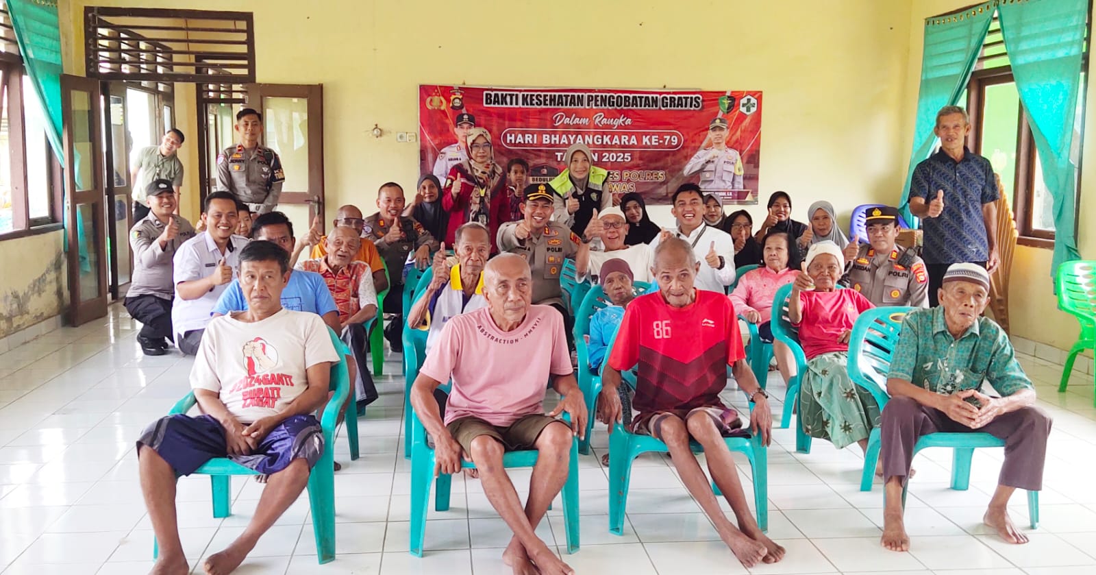 “Dan, hari ini terbukti, menggelar kegiatan “Bakti Kesehatan Pengobatan Gratis”, digelar dalam rangka menyambut Hari Bhayangkara ke-79, balita, remaja dan lansia di UPTD Panti Sosial Lanjutan Usia Harapan Kita, Provinsi Sumatera Selatan di Dusun I Desa G1 Mataram,” kata dr H Victor Andrianto MM, didampingi, Zarmis Sumarni