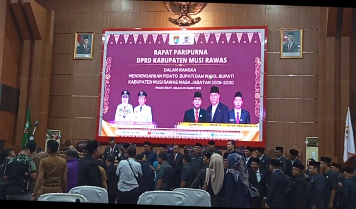 Dewan Perwakilan Rakyat Daerah DPRD Kabupaten Musi Rawas gelar rapat paripurna dengan agenda mendengarkan penyampaian pidato Bupati Musi Rawas Masa Jabatan 2025-2030