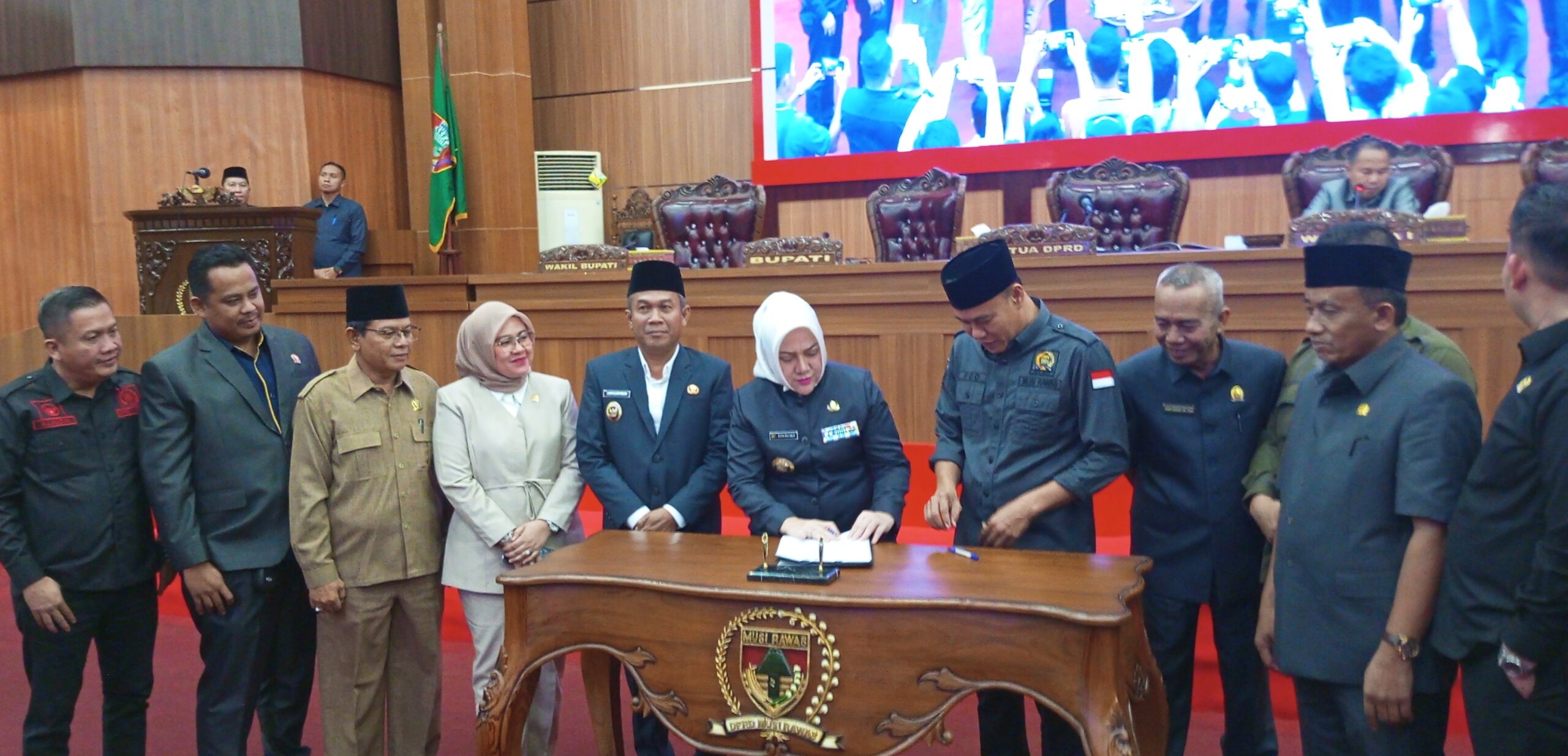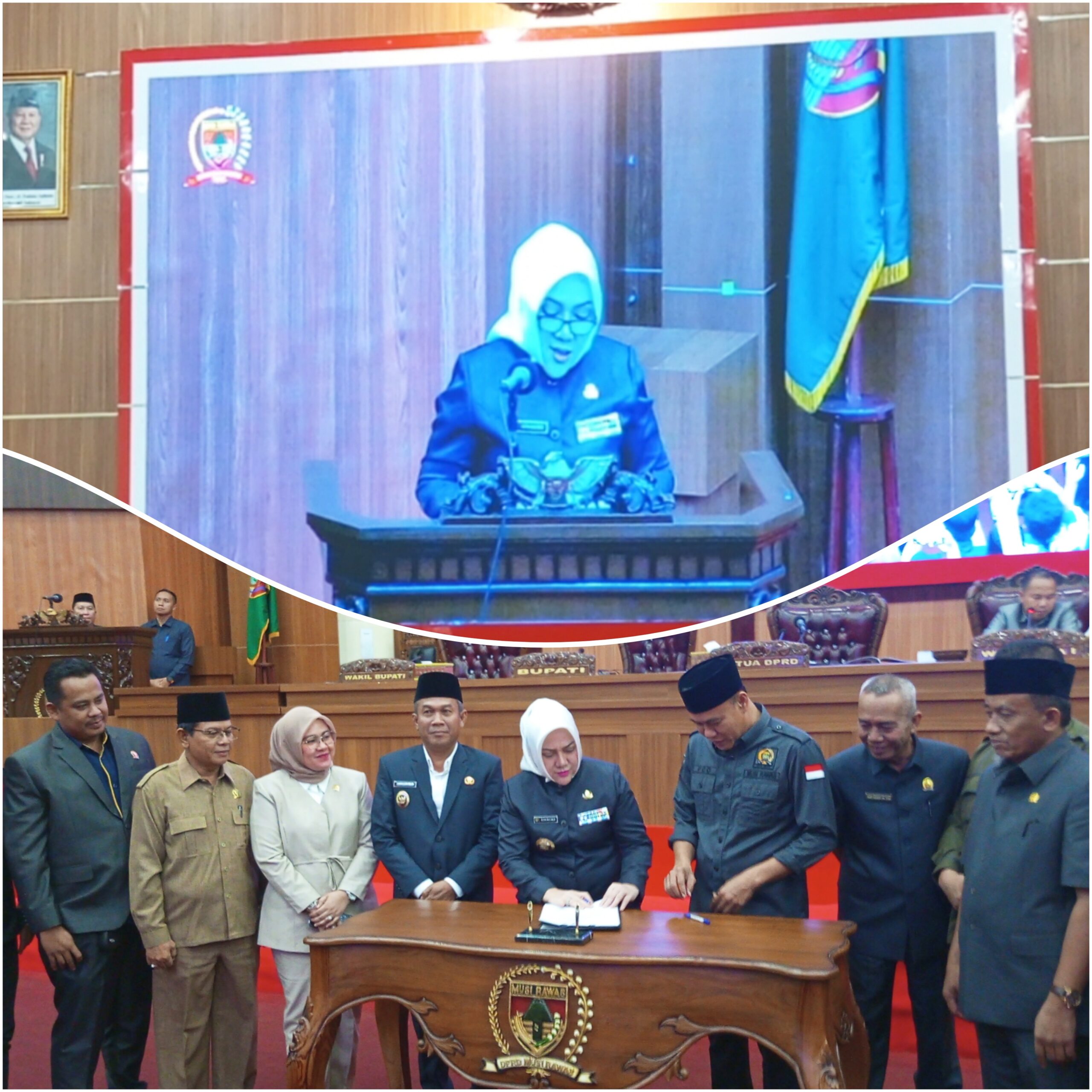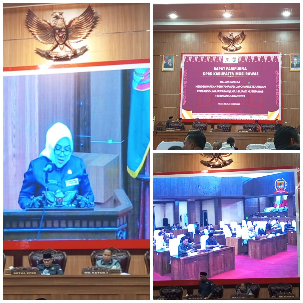 Rapat Paripurna Dewan Perwakilan Rakyat Daerah (DPRD) Kabupaten Musi Rawas dalam rangka mendengarkan pidato Bupati Musi Rawas Hj. Ratna Machmud penyampaian laporan keterangan pertanggungjawaban (LKPJ) Bupati Musi Rawas Anggaran 2024, kegiatan tersebut dilaksanakan di Ruangan Rapat Paripurna DPRD Kabupaten Musi Rawas (Mura), Provinsi Sumatera Selatan (Sumsel). Sabtu (15/03/2025)