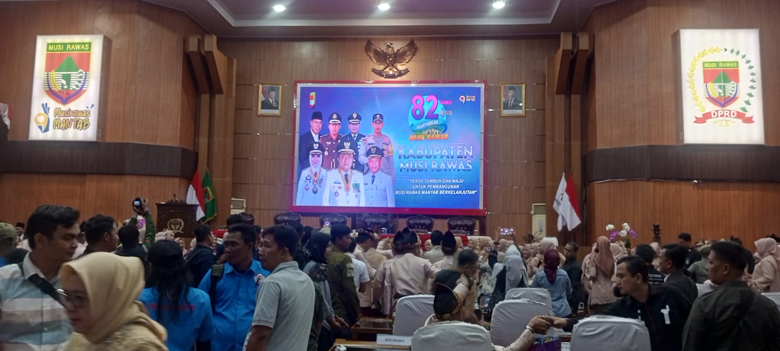Bertempat di ruang rapat Paripurna DPRD Kabupaten Musi Rawas, Provinsi Sumatera Selatan, acara berlangsung khidmat meskipun beberapa kursi terlihat kosong akibat kegiatan internal partai politik yang tengah berlangsung.