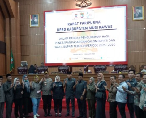 Sementara itu, usai melaksanakan paripurna usulan pemberhentian Bupati dan Wakil Bupati Musi Rawas periode 2021-2025, DPRD Musi Rawas, melanjutkan paripurna dengan agenda pengumuman hasil penetapan pasangan calon Bupati dan Wakil Bupati terpilih periode 2025-2030 .