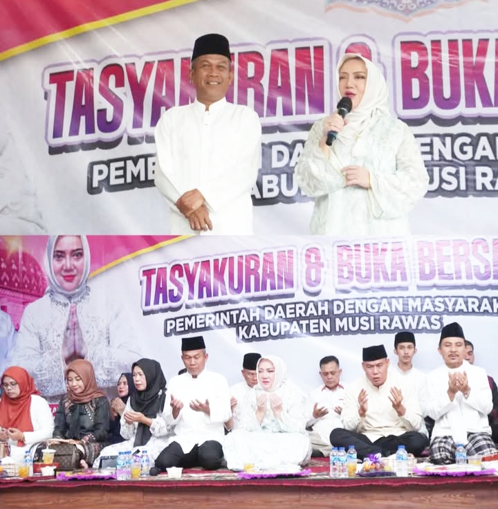 Ulasanrakyat.Com – Musi Rawas. Bupati Hj Ratna Machmud dan Wakil Bupati Musi Rawas, H. Suprayitno gelar acara Tasyakuran dan buka puasa bersama di hadiri ribuan Masyarakat kabupaten Musi Rawas. Acara tersebut di laksanakan di Pendopo rumah Bupati Musi Rawas (Mura), Provinsi Sumatera Selatan (Sumsel). Sabtu, (08/03/2025).