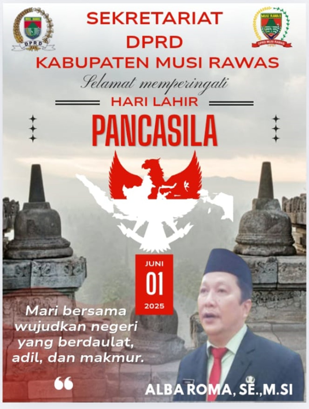 Sekretariat DPRD Kabupaten Musi Rawas Mengucapakan selamat Memperingati Hari Pancasila, 01 Juni 2025