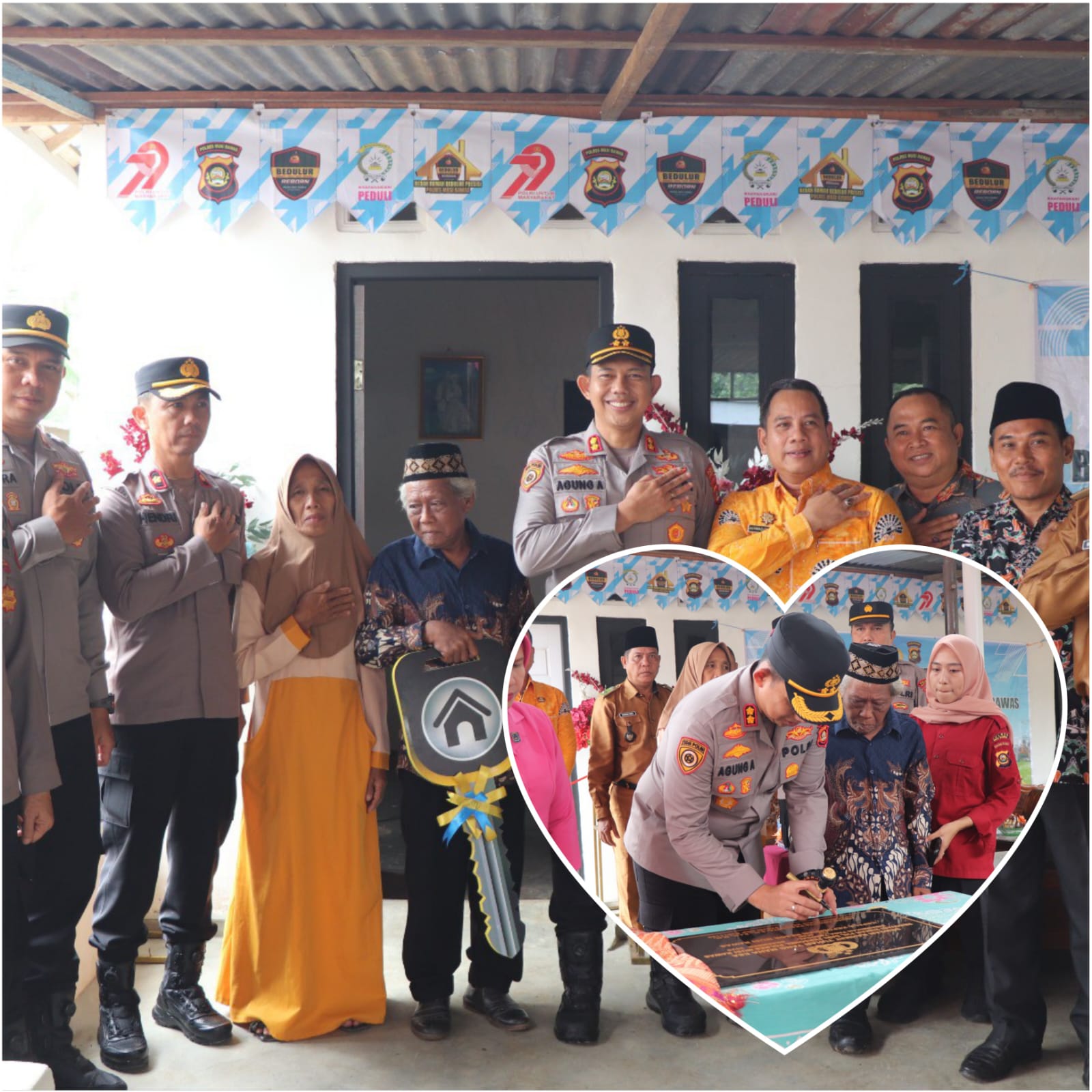 “Pelaksanaan peresmian dan penyerahan kunci bedah rumah dapat terlaksana pada hari ini berkat dukungan semua pihak,” ujar Kapolres.