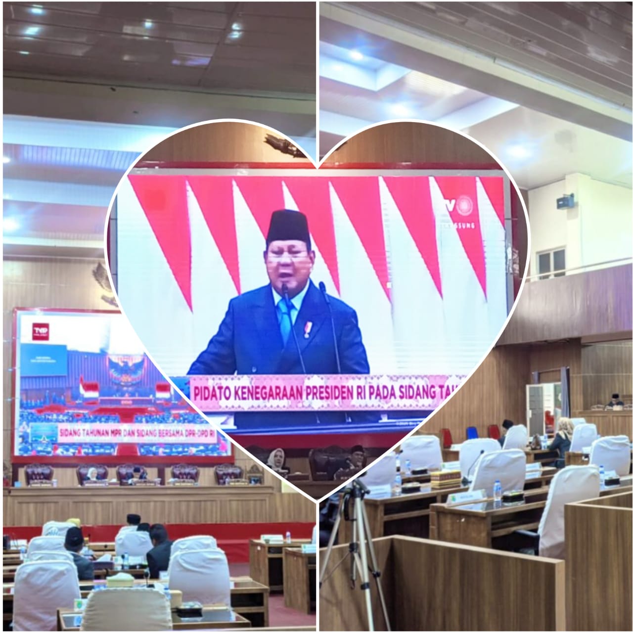 Sidang Paripurna DPRD Musi Rawas Dalam Rangka Mendengarkan Pidato Presiden RI Prabowo Subianto.