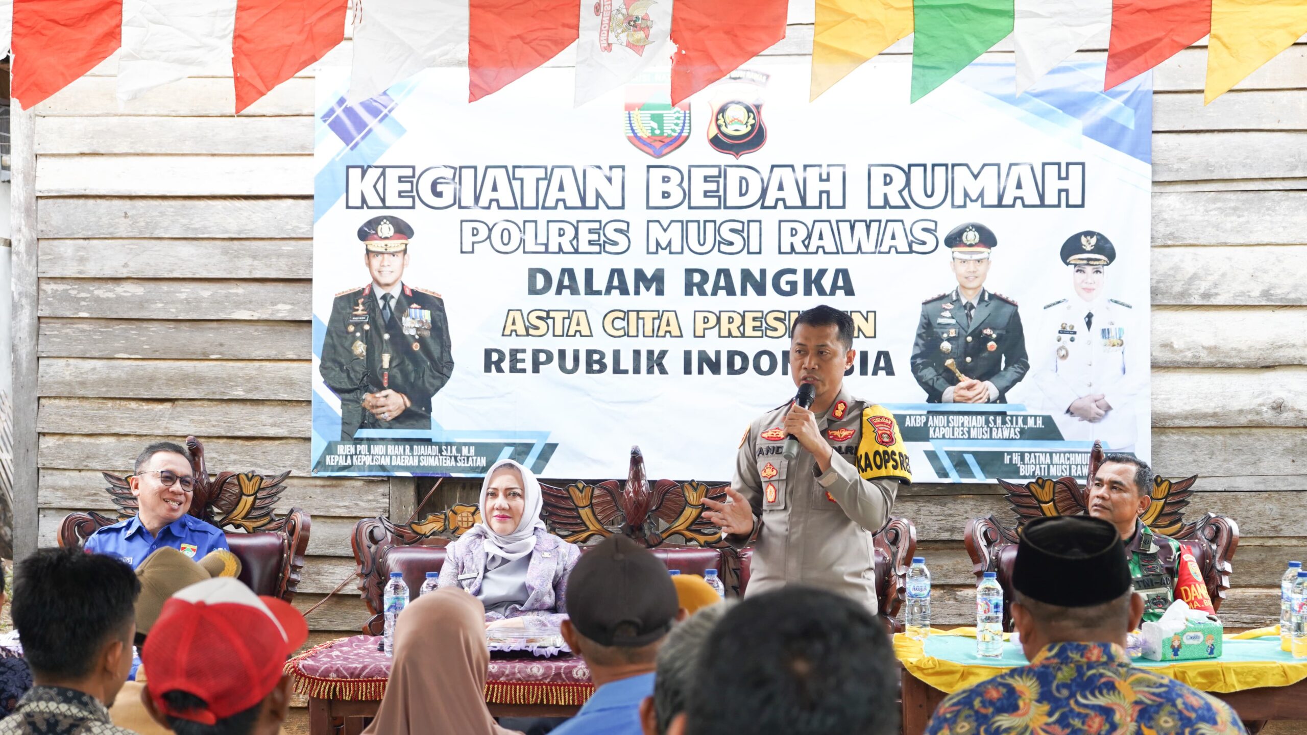 Kapolres menjelaskan, dan tahun ini informasi dari Dinas Perkim Kabupaten Mura, ada 120 bedah rumah, bahkan ada program bantuan rumah baru. Dan, program bedah rumah seperti ini dianggarkan lebih kurang Rp 20 juta, namun, kalau program itu benar, bantuan rumah baru berkisar lebih kurang Rp 35 juta.