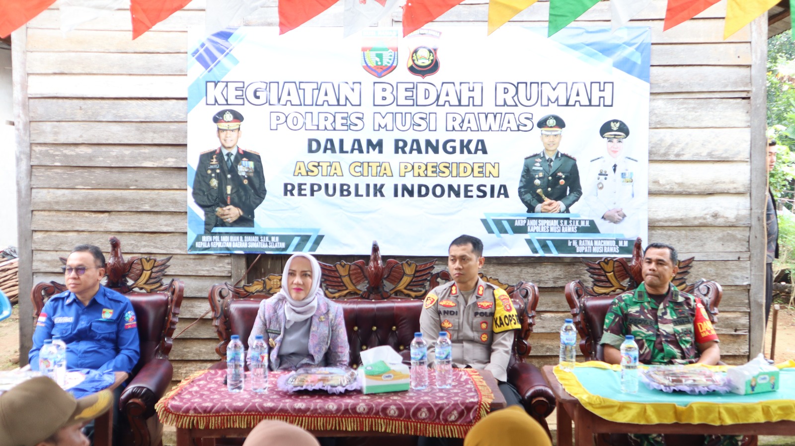 Kapolres menjelaskan, dan tahun ini informasi dari Dinas Perkim Kabupaten Mura, ada 120 bedah rumah, bahkan ada program bantuan rumah baru. Dan, program bedah rumah seperti ini dianggarkan lebih kurang Rp 20 juta, namun, kalau program itu benar, bantuan rumah baru berkisar lebih kurang Rp 35 juta.
