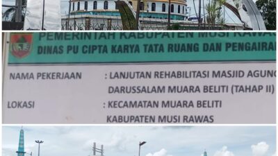 Ulasanrakyat.Com – Musi Rawas. Rehabilitasi kubah Masjid Agung Darussalam Kabupaten Musi Rawas akhirnya tampak rampung….