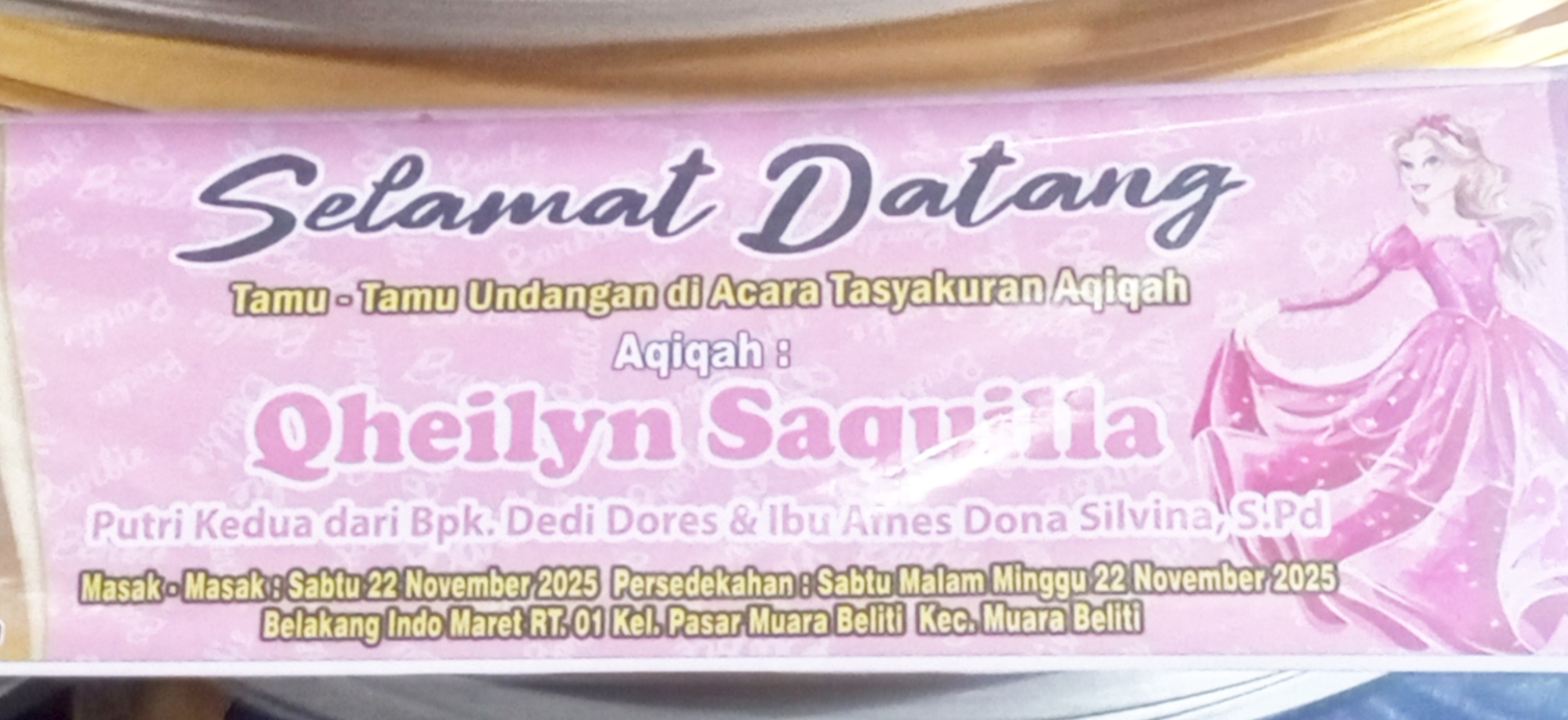 Rangkaian tasyakuran berlangsung tertib dan lancar. Para tamu disuguhi suasana religius yang dipadukan dengan suasana kekeluargaan khas masyarakat Musi Rawas. Doa-doa dipanjatkan untuk keselamatan dan keberkahan bagi Qheilyn Saquilla yang kini memasuki fase awal kehidupannya.